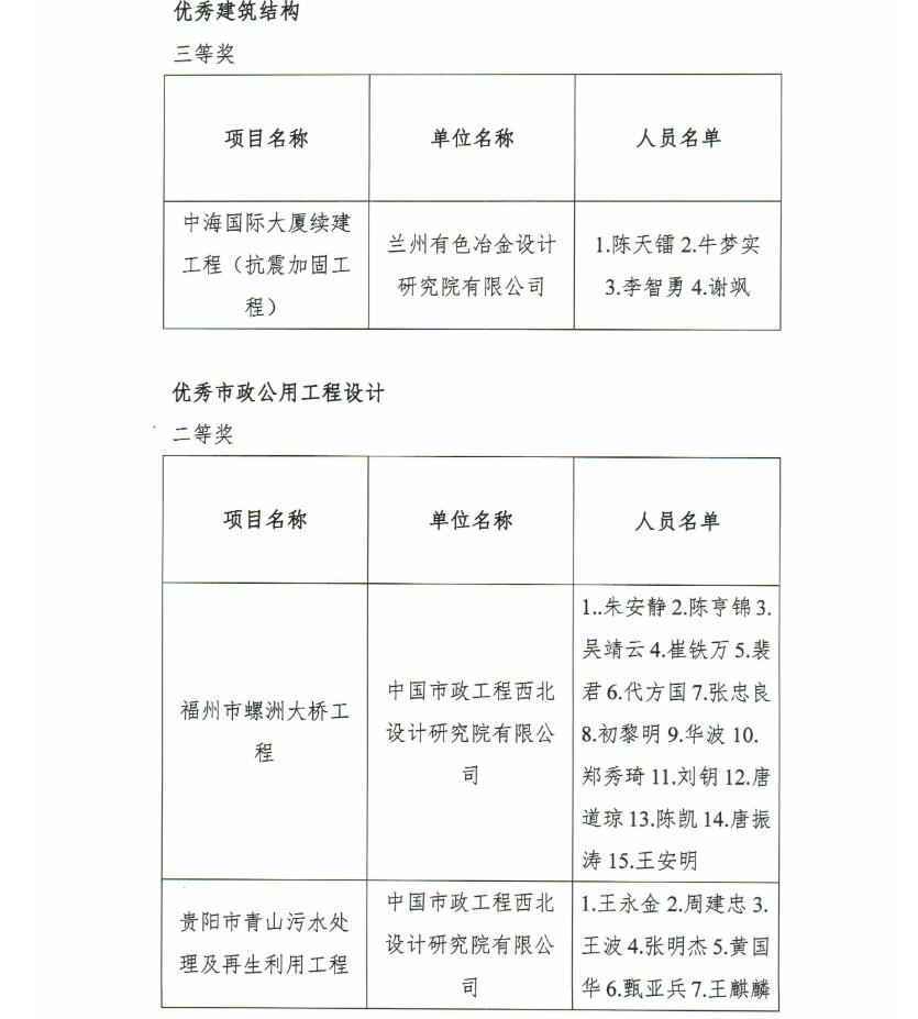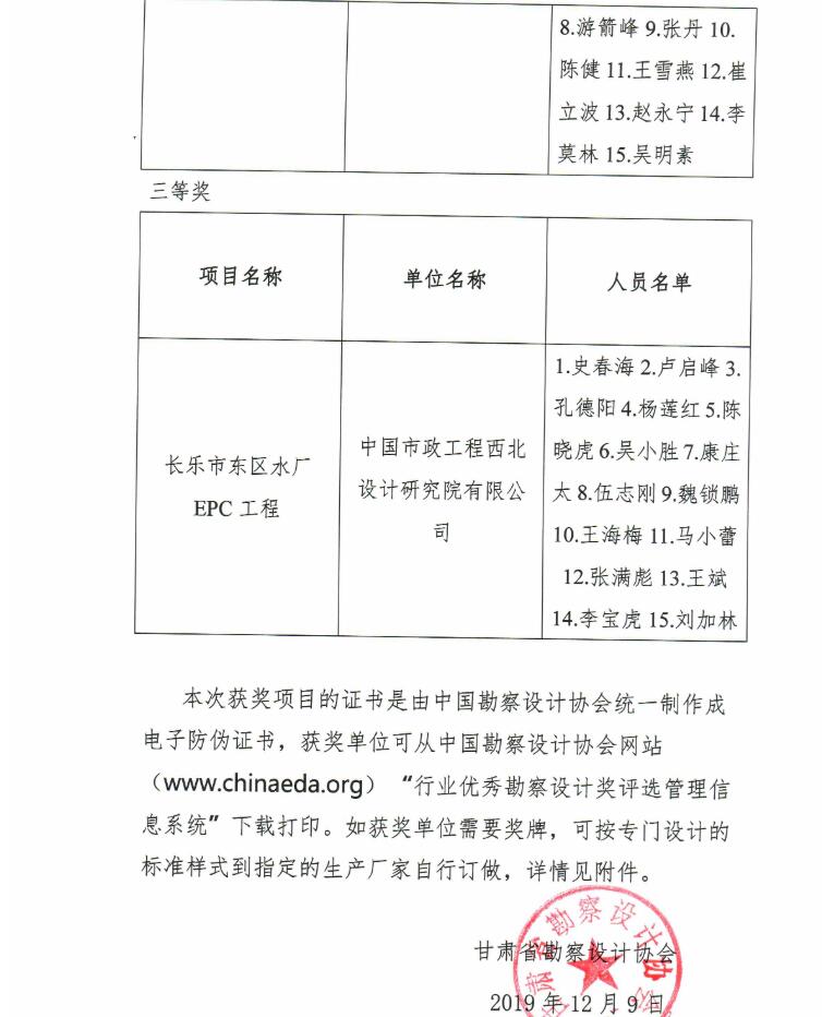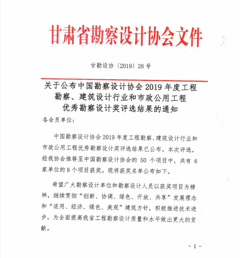 关于公布中国勘察设计协会2019年度工程勘察、建筑设计行业和市政公用工程 优秀勘察设计奖评选结果的通知