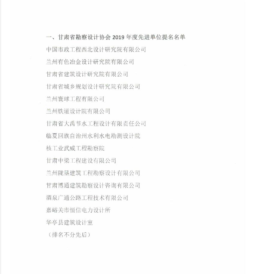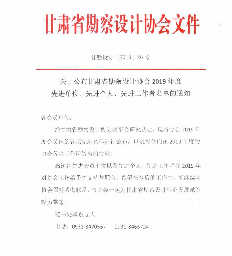 关于公布中国勘察设计协会2019年度工程勘察、建筑设计行业和市政公用工程 优秀勘察设计奖评选结果的通知