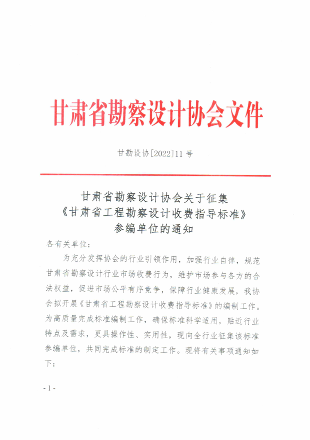 11号18新利怎么样关于征集《甘肃省工程勘察设计收费指导标准》参编单位的通知(2).PDF