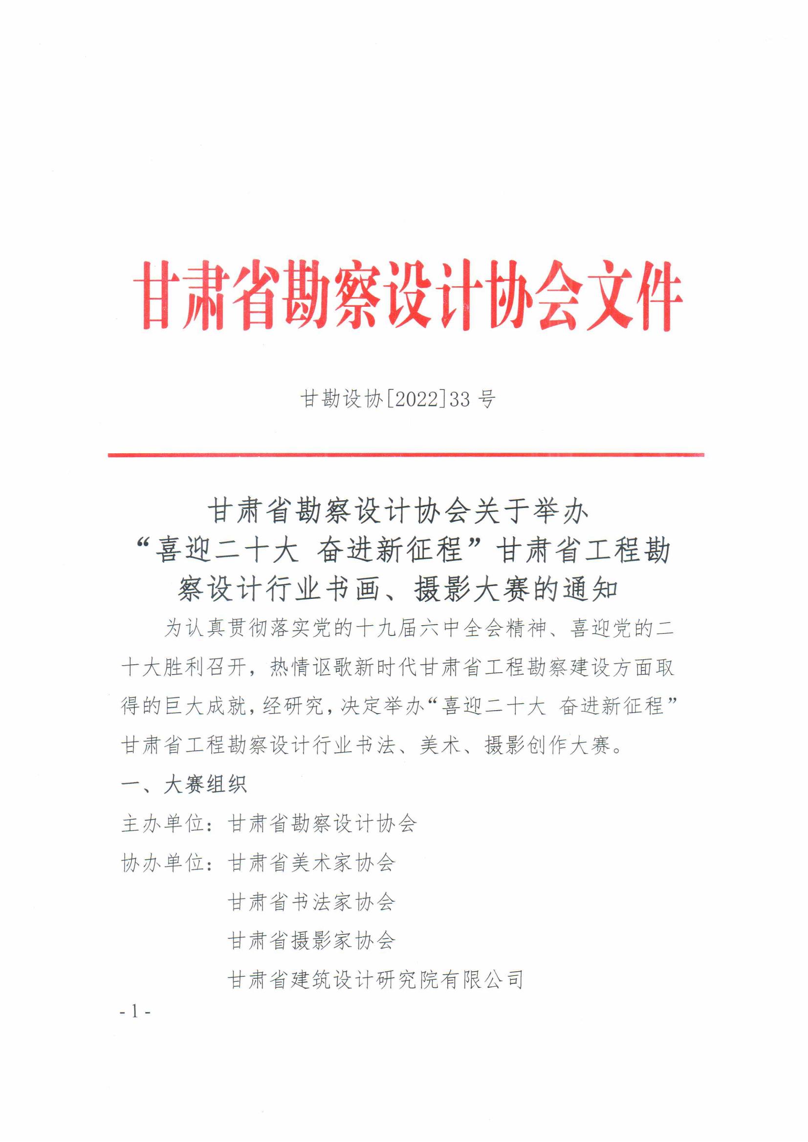 18新利怎么样关于举办“喜迎二十大 奋进新征程”甘肃省工程勘察设计行业书画、摄影大赛的通知
