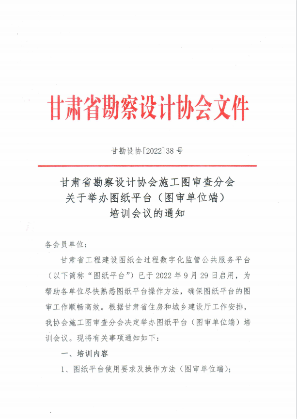 关于举办图纸平台(图审单位端) 培训会议的通知