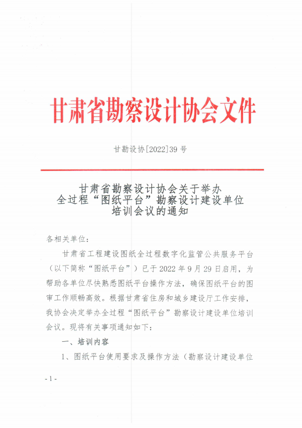 关于举办全过程“图纸平台”勘察设计建设单位培训会议的通知