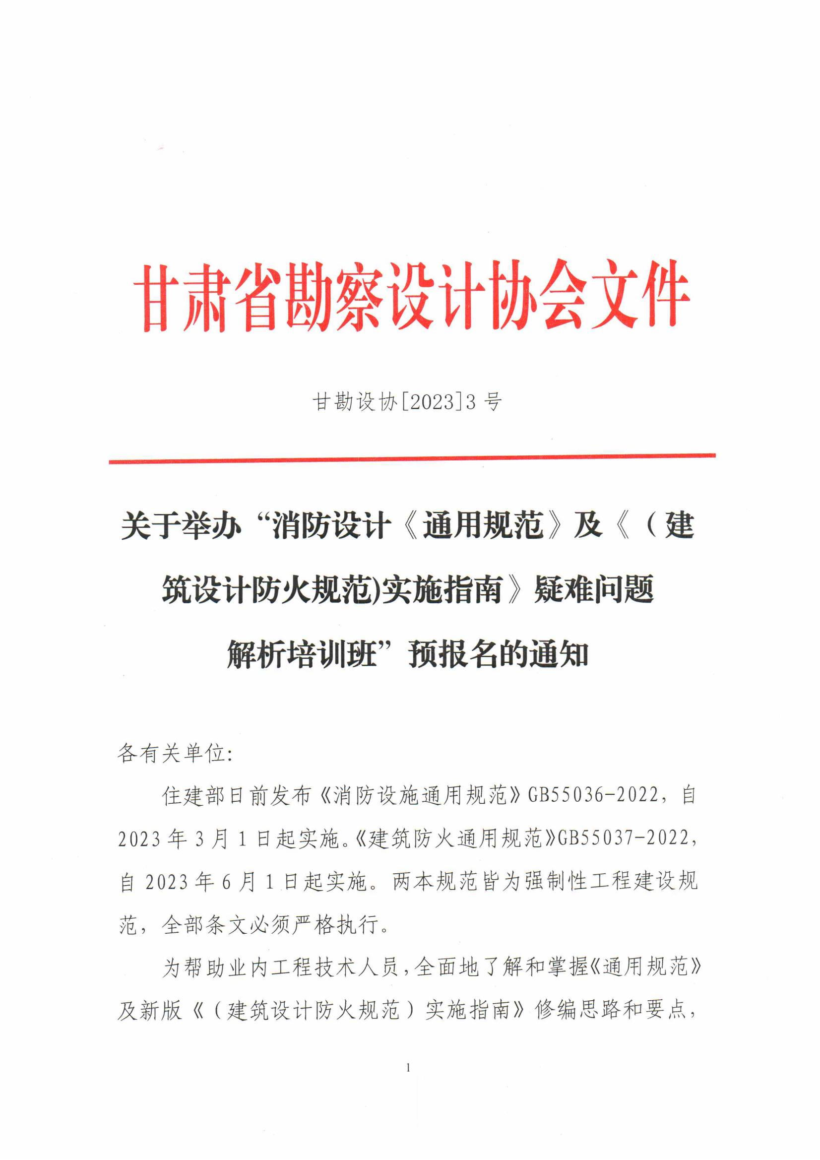 关于举办“消防设计《通用规范》及《(建筑设计防火规范)实施指南》疑难问题 解析培训班”预报名的通知