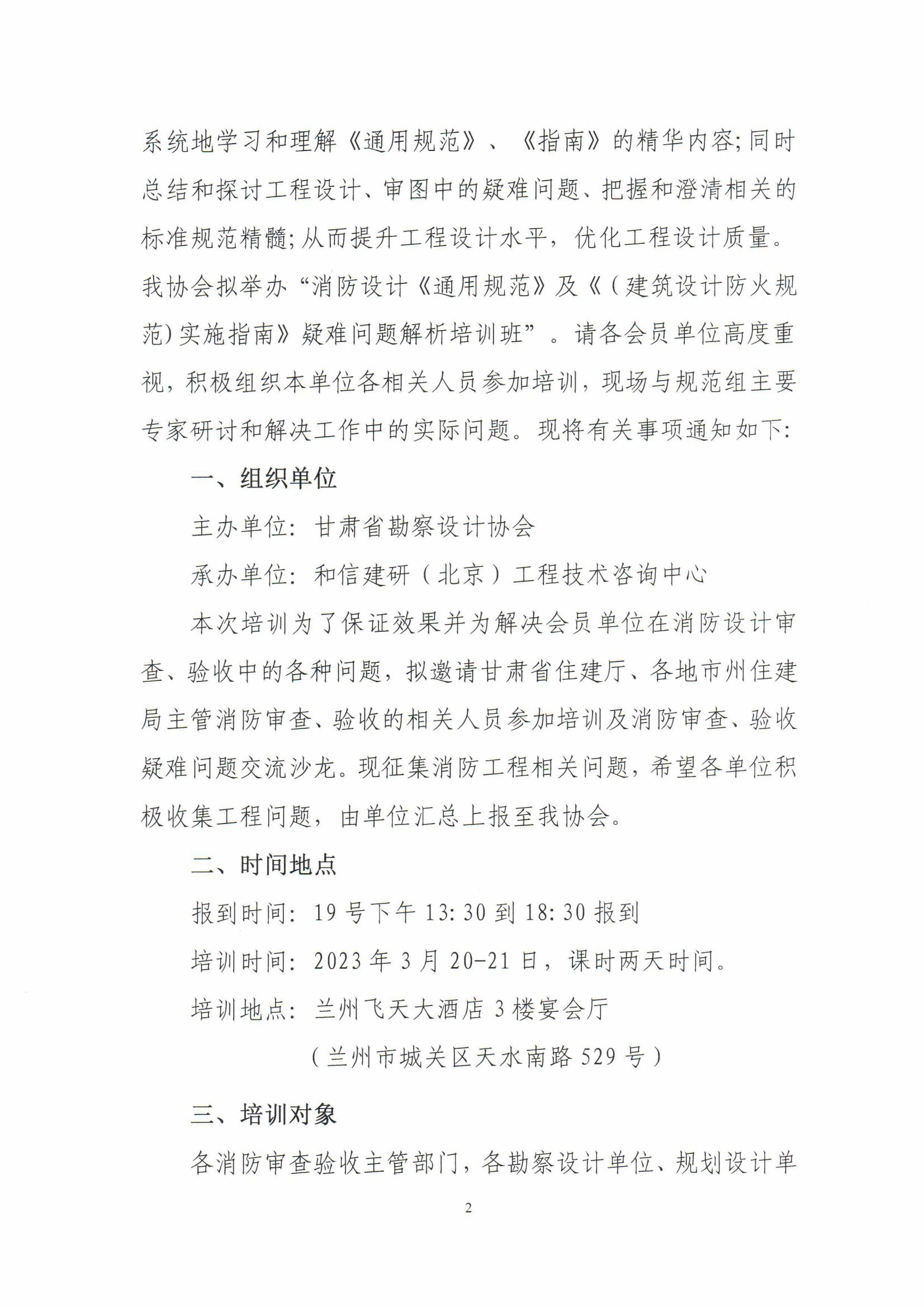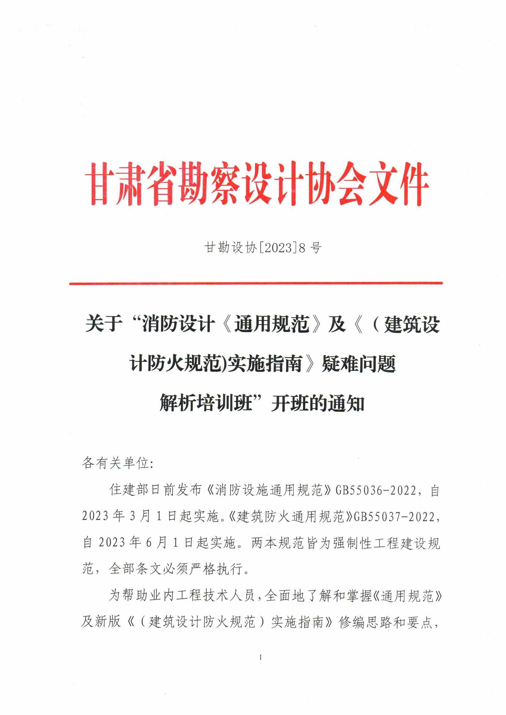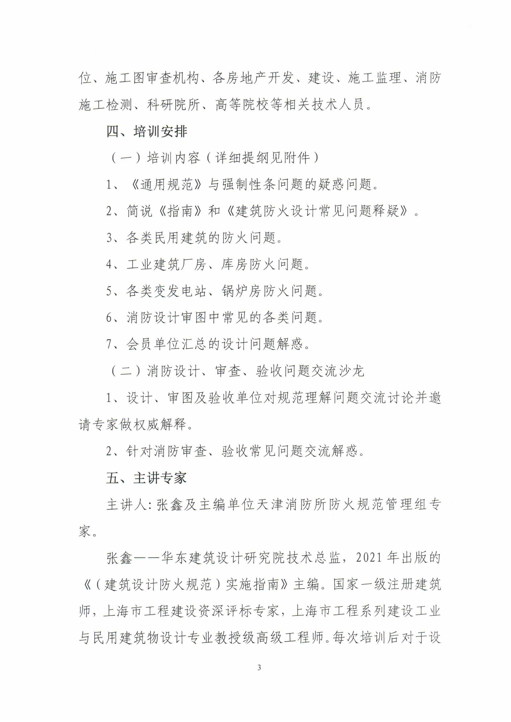 关于“消防设计《通用规范》及《(建筑设计防火规范)实施指南》疑难问题解析培训班”开班的通知