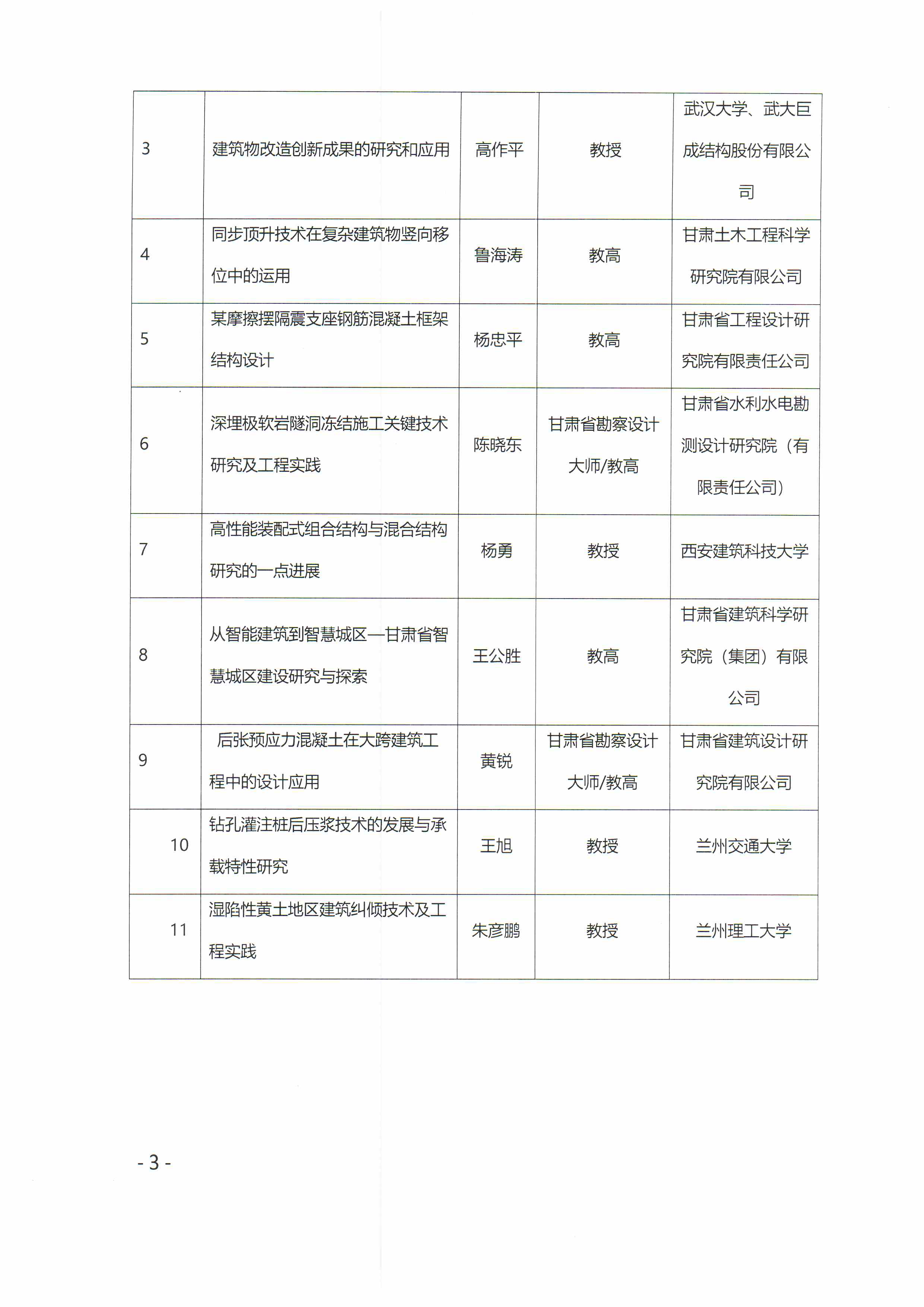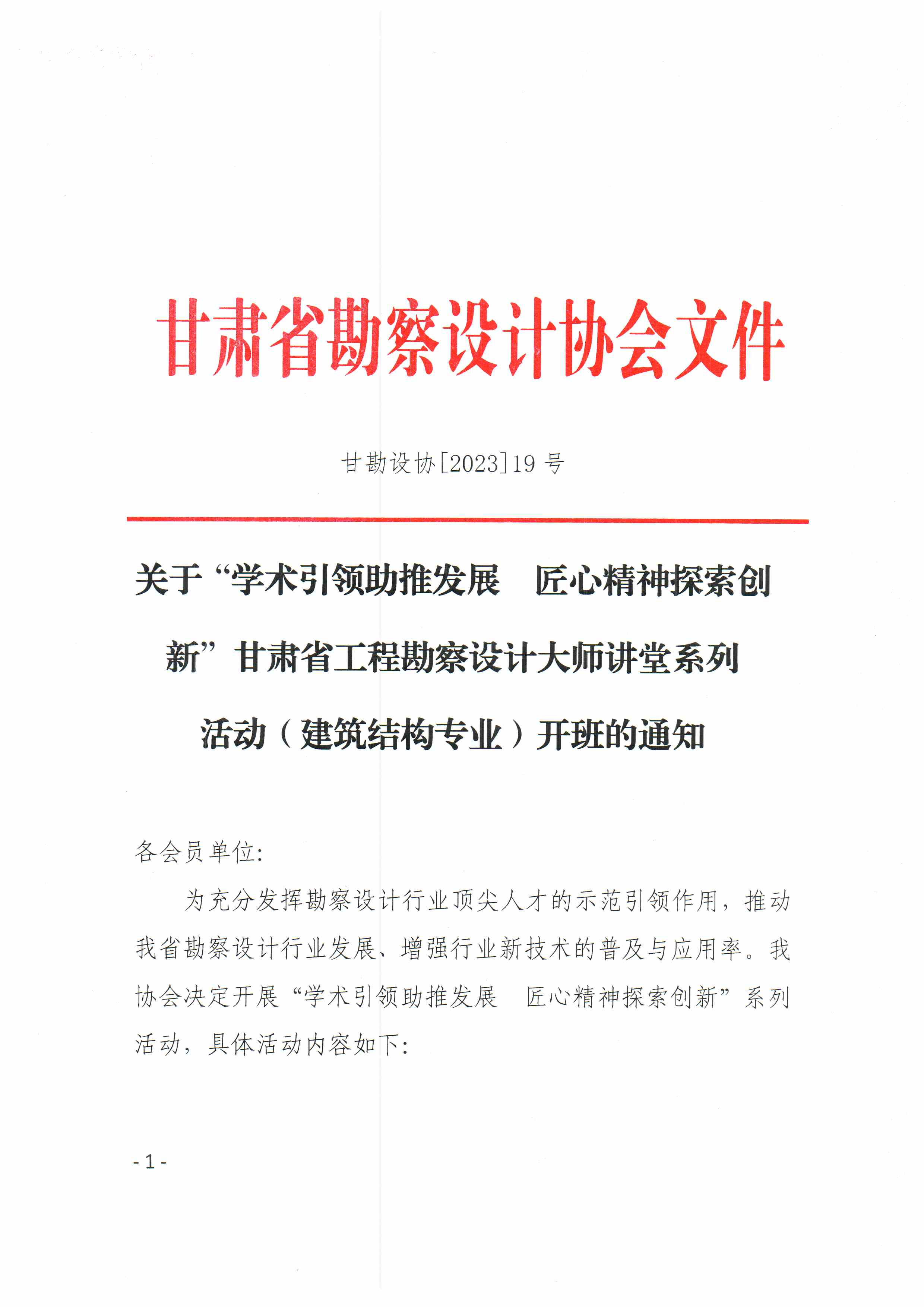 关于“学术引领助推发展 匠心精神探索创新”甘肃省工程勘察设计大师讲堂系列活动(建筑结构专业)开班的通知