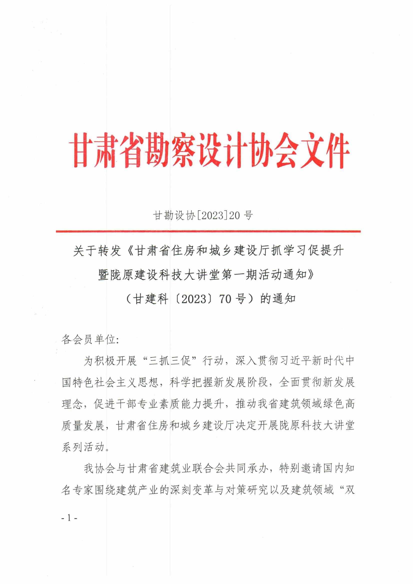 关于“学术引领助推发展 匠心精神探索创新”甘肃省工程勘察设计大师讲堂系列活动(建筑结构专业)开班的通知