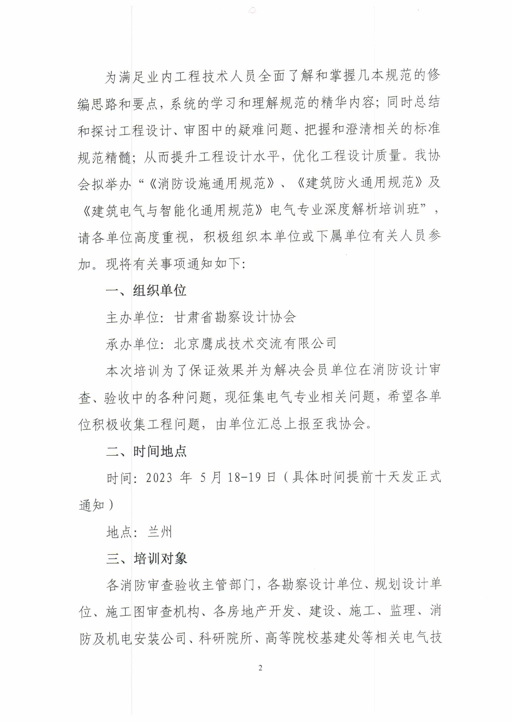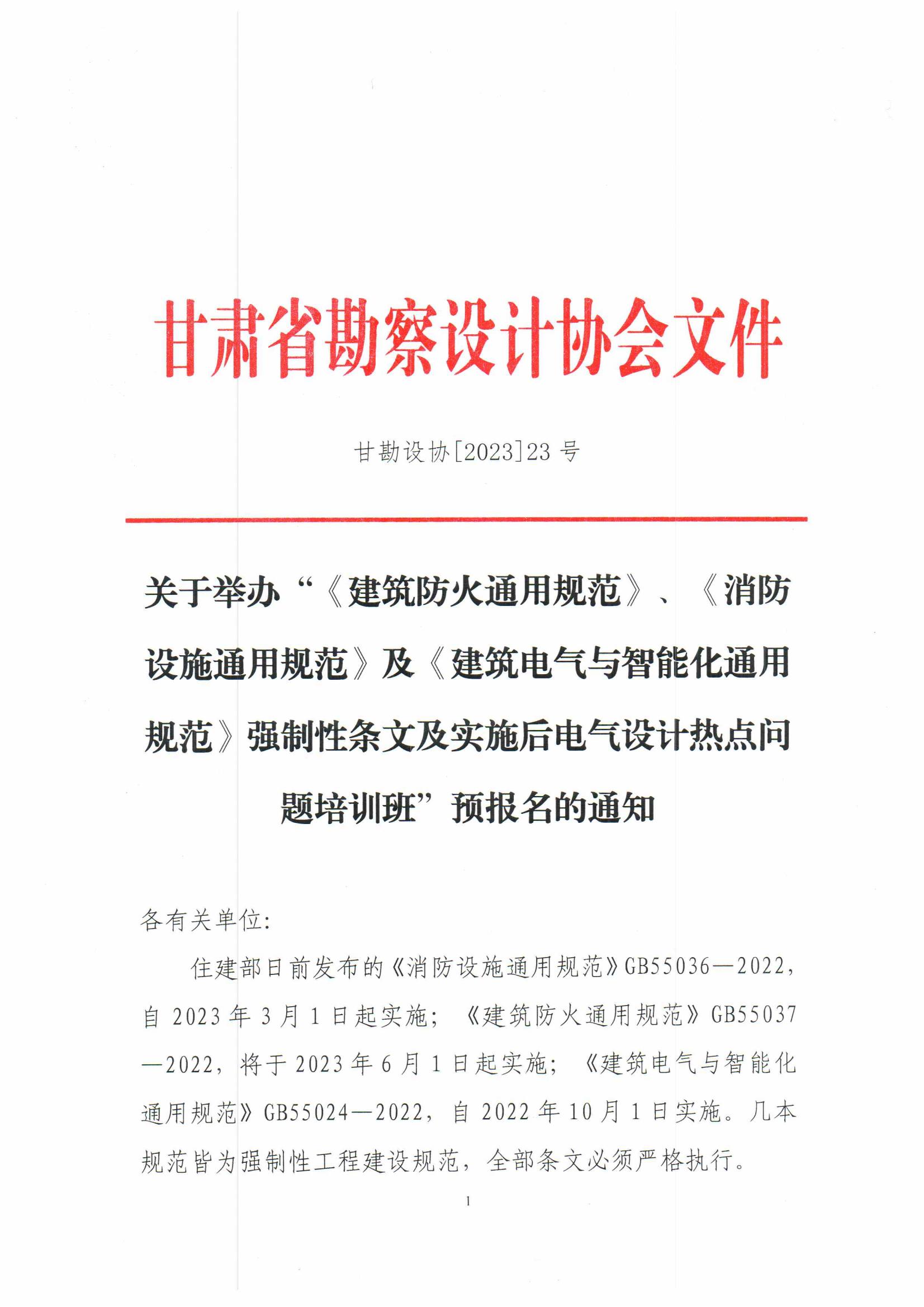关于举办“《建筑防火通用规范》、《消防设施通用规范》及《建筑电气与智能化通用规范》强制性条文及实施后电气设计热点问题培训班”预报名的通知