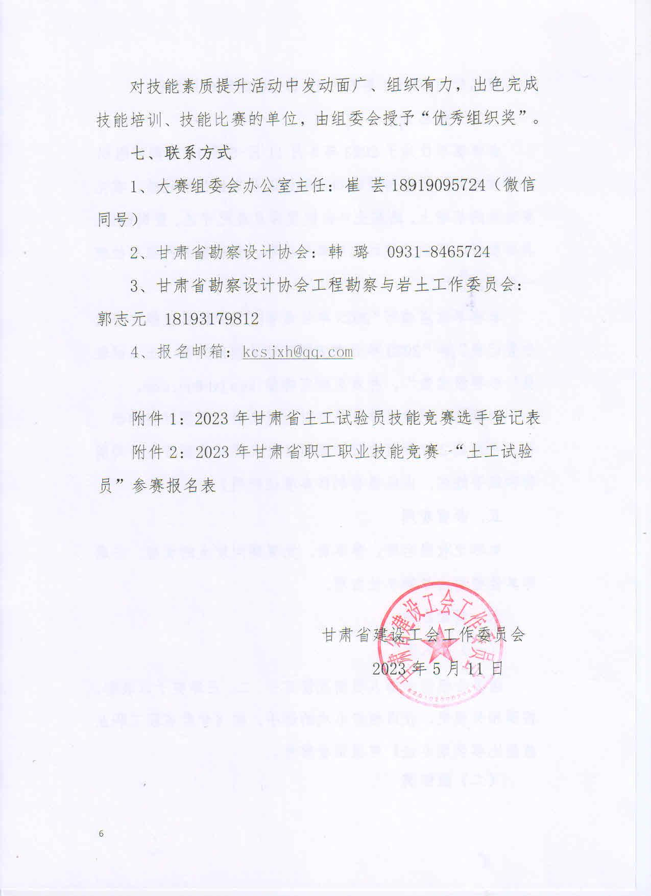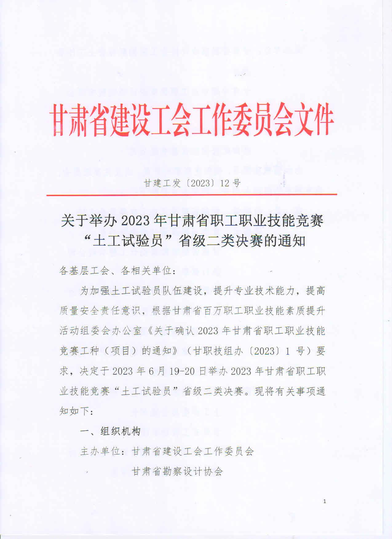 关于举办2023年甘肃省职工职业技能竞赛“土工试验员”省级二类决赛的通知.pdf