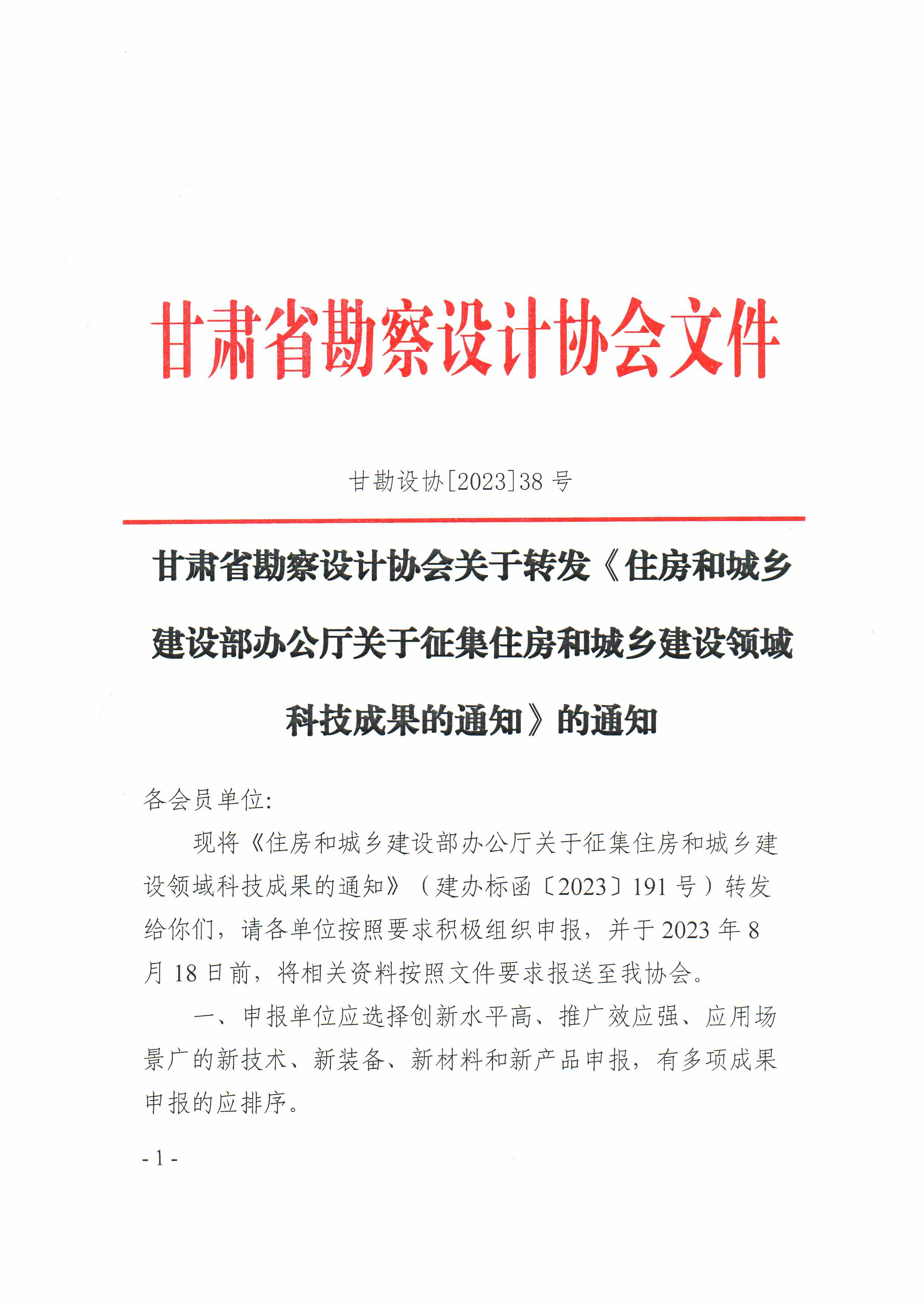 《住房和城乡建设部办公厅关于征集住房和城乡建设领域科技成果的通知》建办标函2023191号.pdf