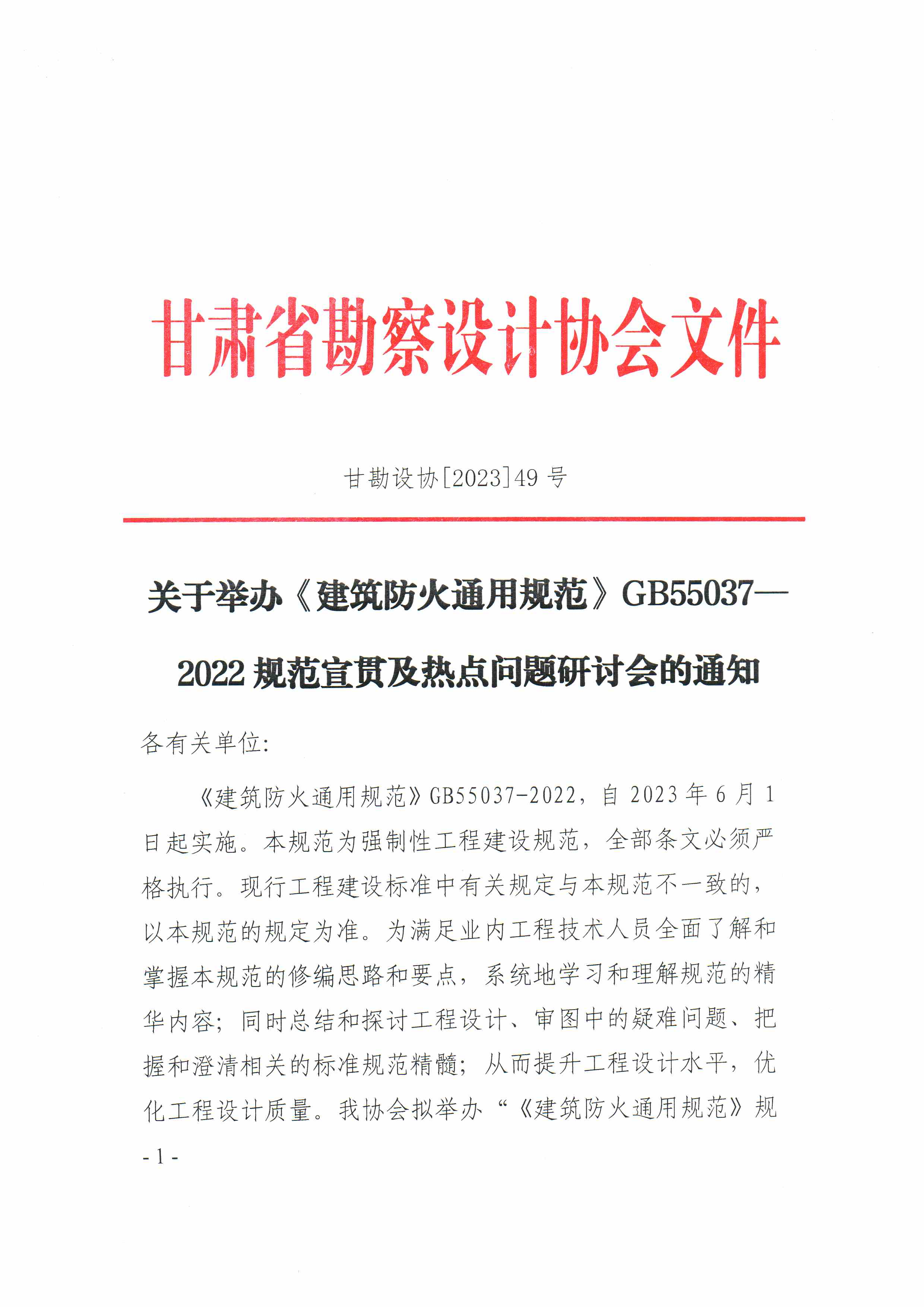 关于举办《建筑防火通用规范》GB55037—2022规范宣贯及热点问题研讨会的通知.PDF