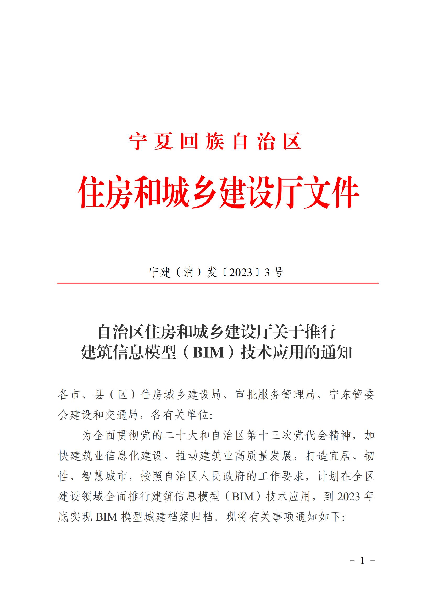 转发丨宁夏回族自治区住房和城乡建设厅关于推行建筑信息模型(BIM)技术应用的通知