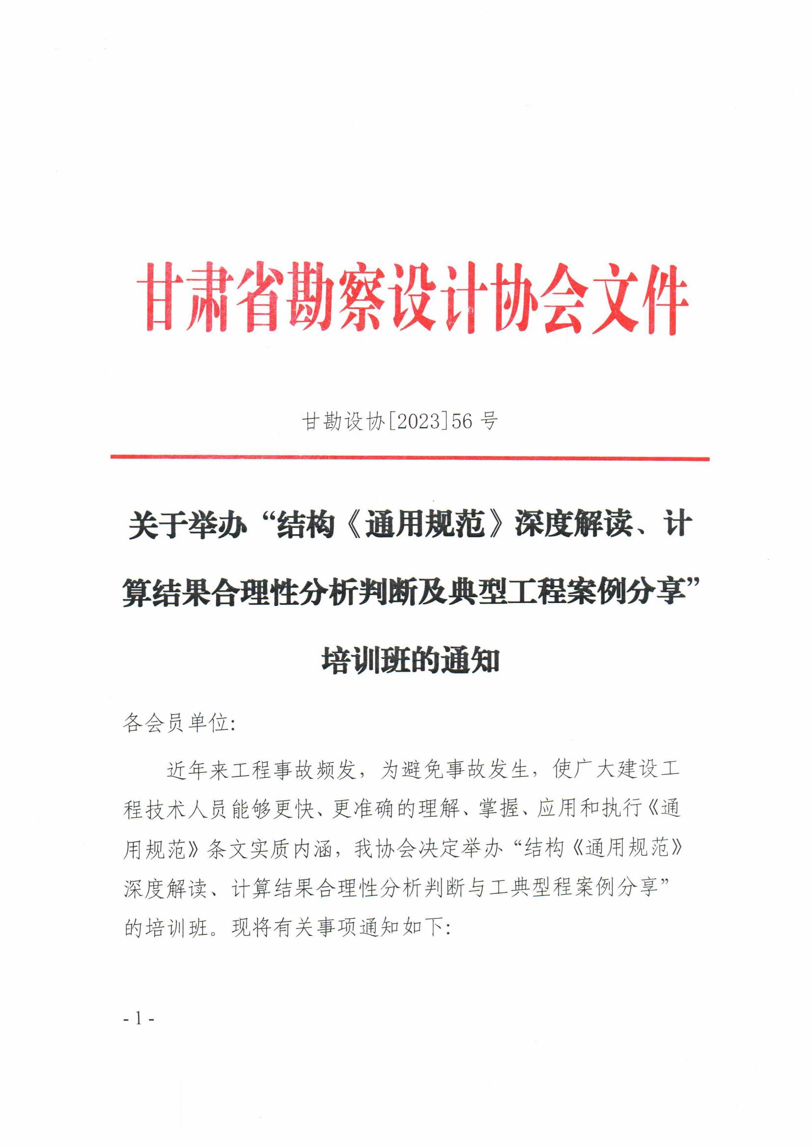 关于举办“结构《通用规范》深度解读、计算结果合理性分析判断及典型工程案例分享”培训班的通知