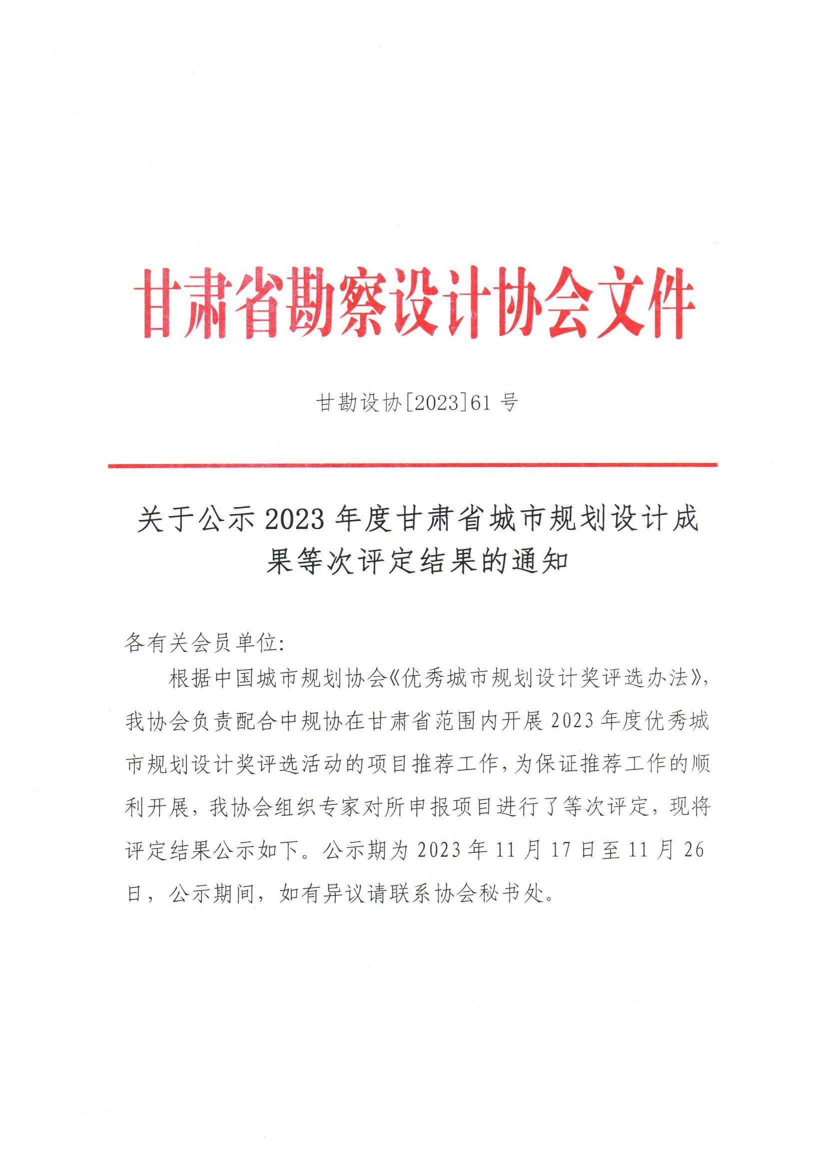关于公示2023年度甘肃省城市规划设计成果等次评定结果的通知.PDF
