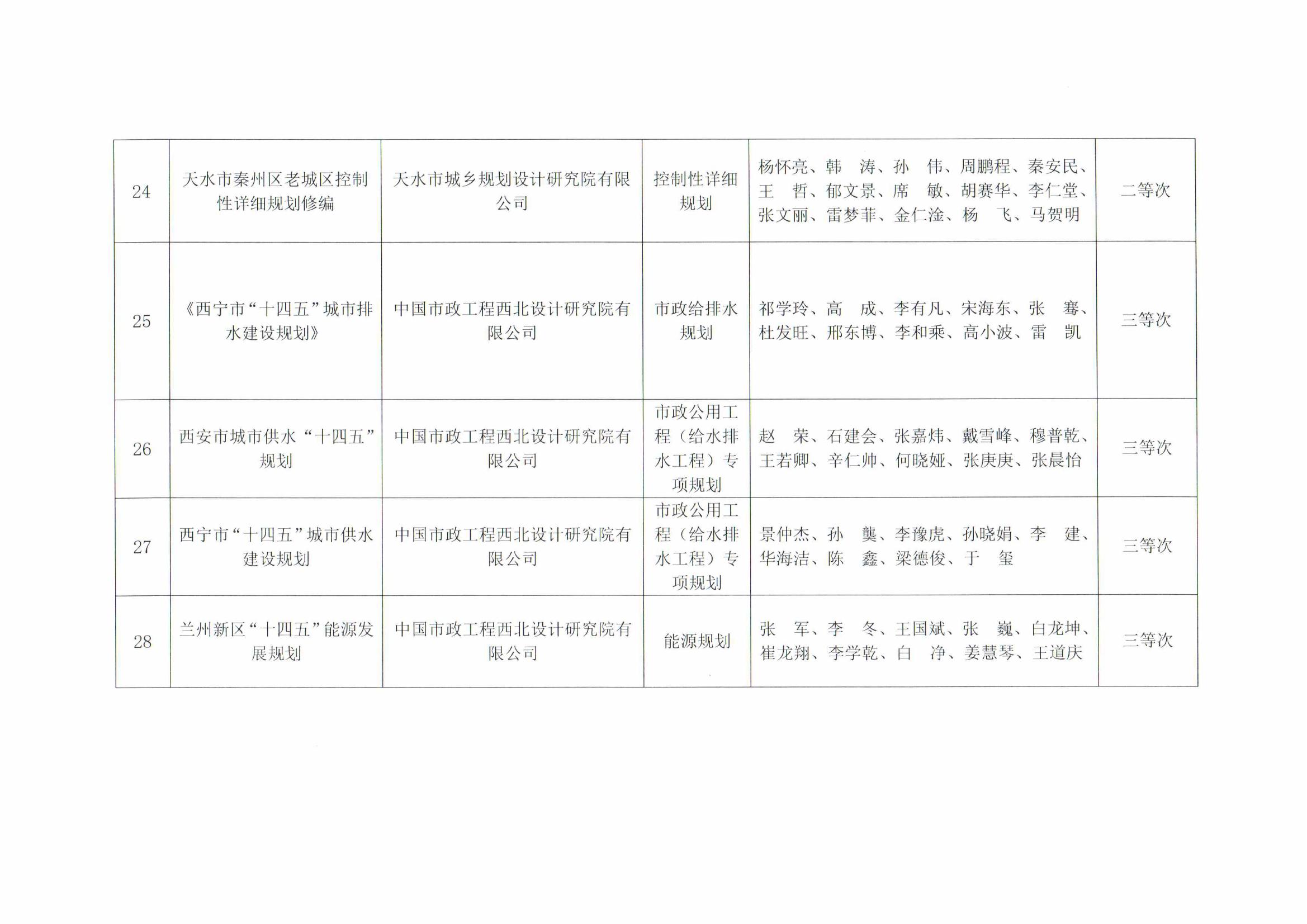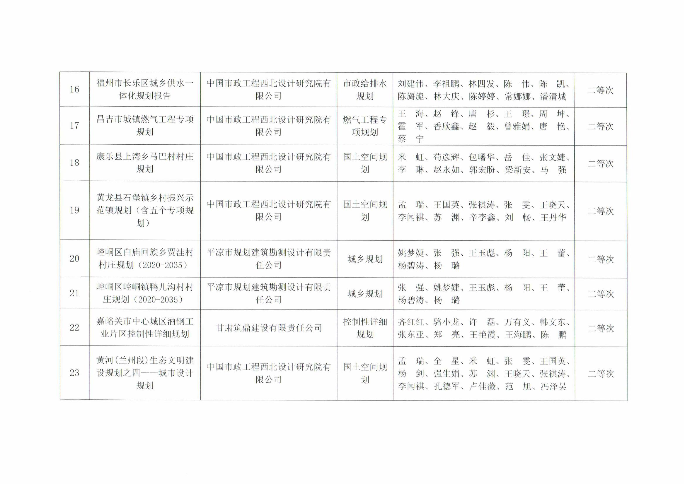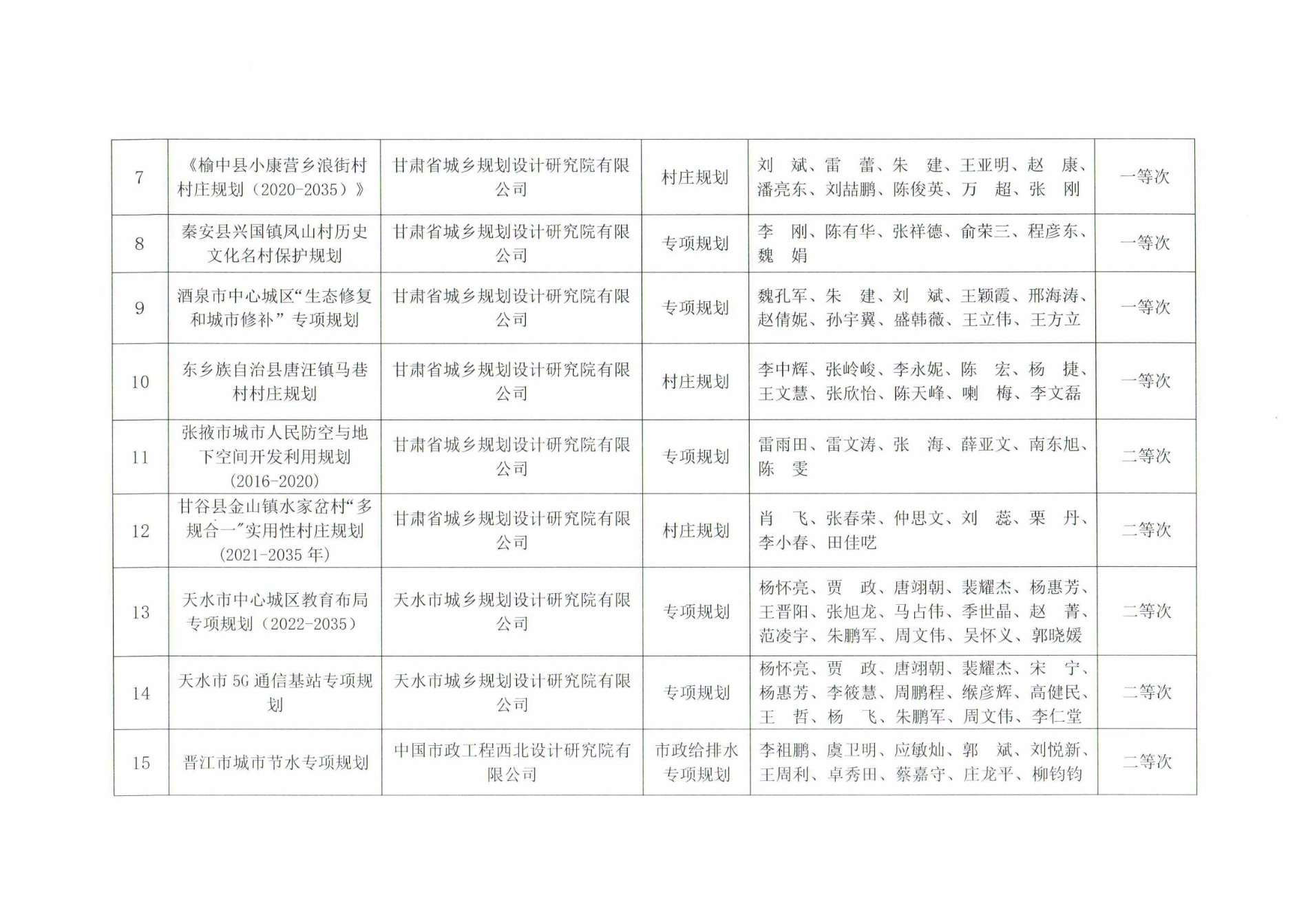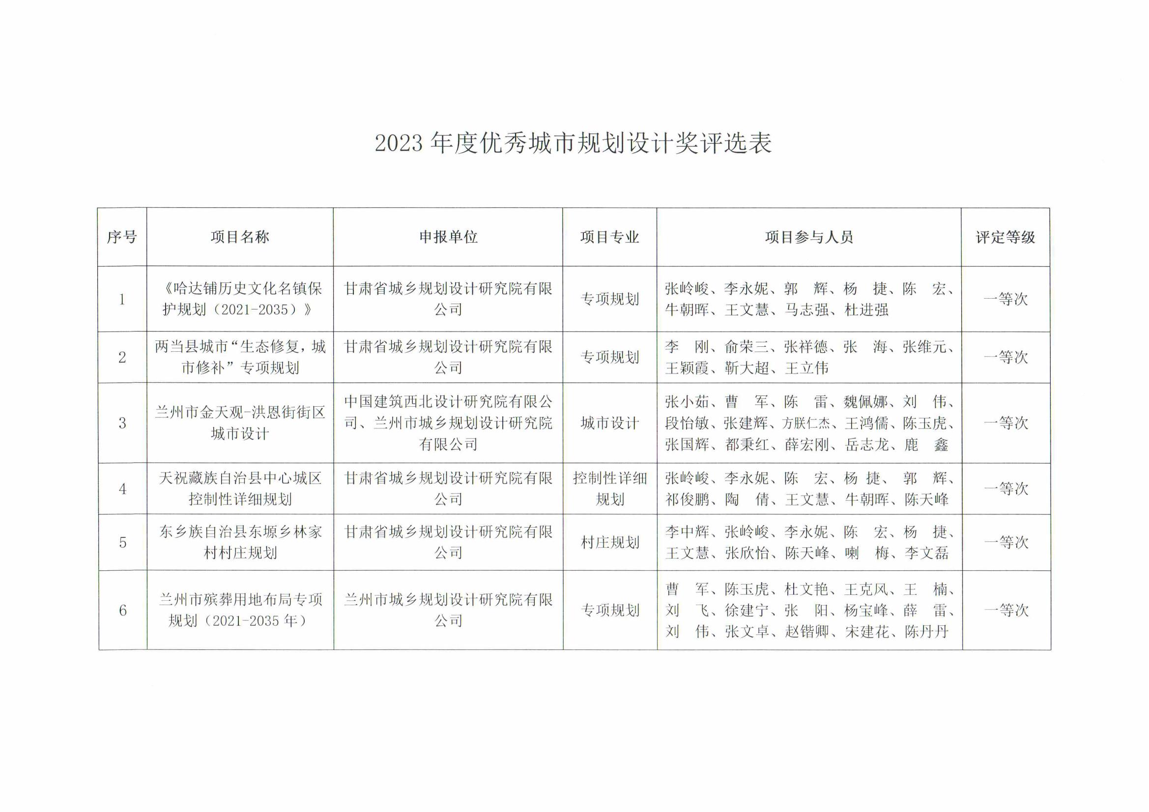 关于公示2023年度甘肃省城市规划设计成果等次评定结果的通知