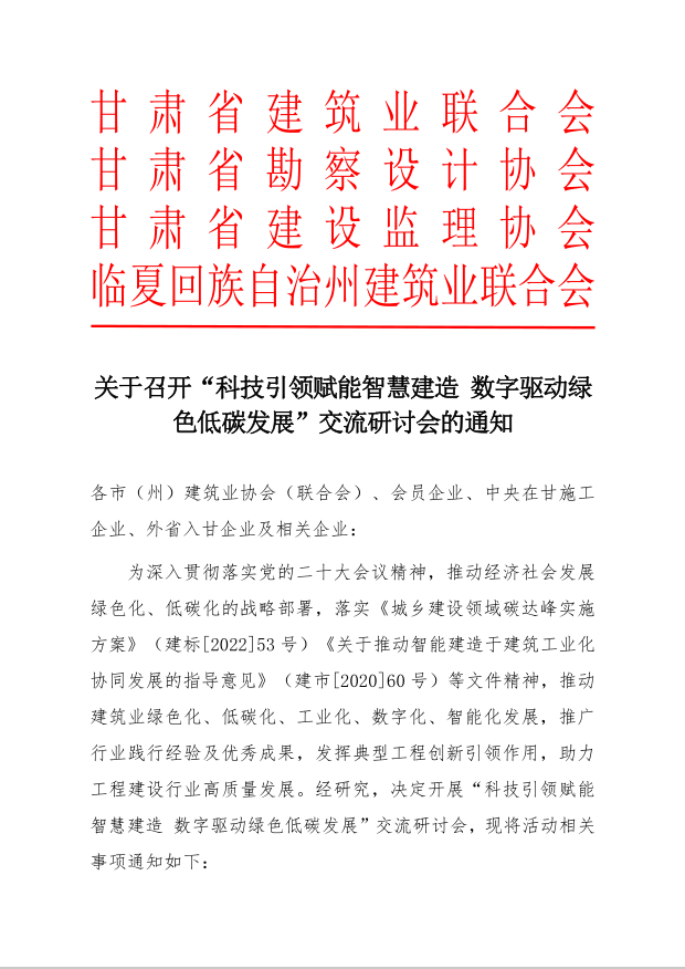 关于召开“科技引领赋能智慧建造 数字驱动绿 色低碳发展”交流研讨会的通知