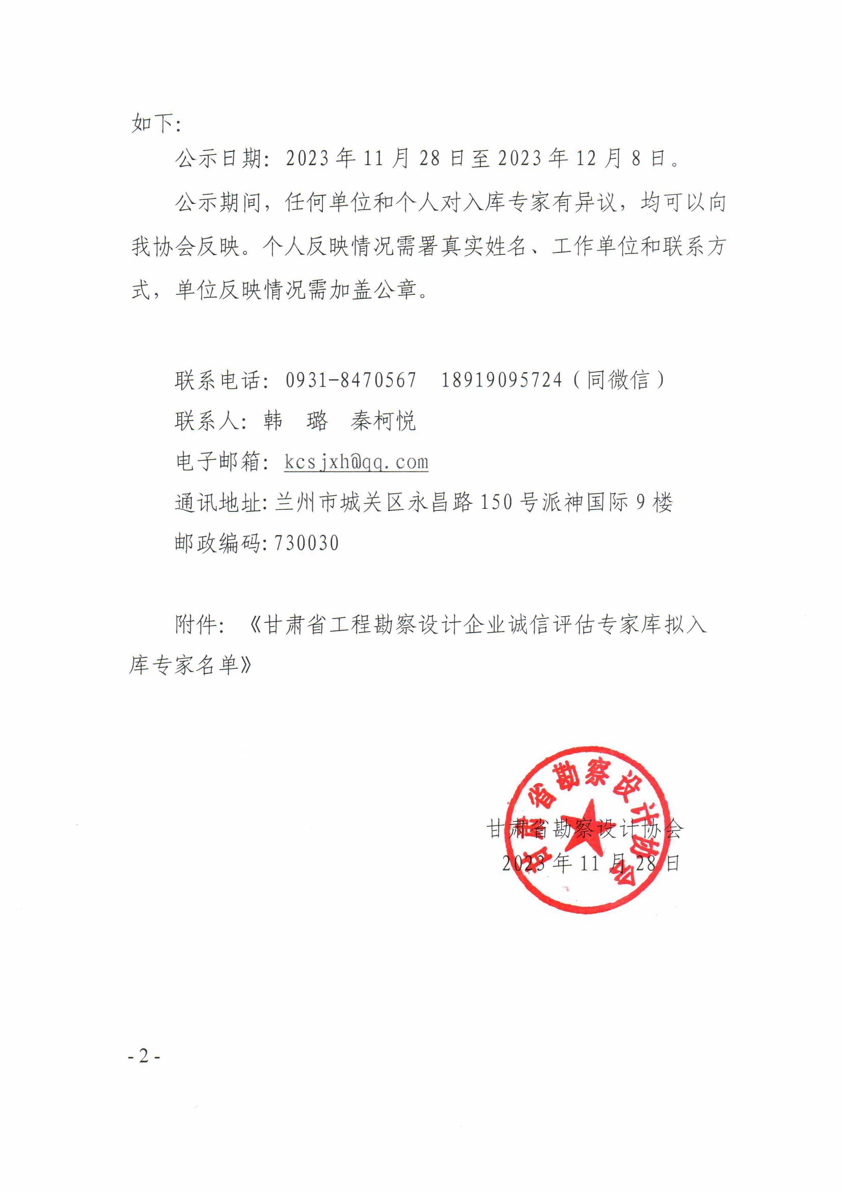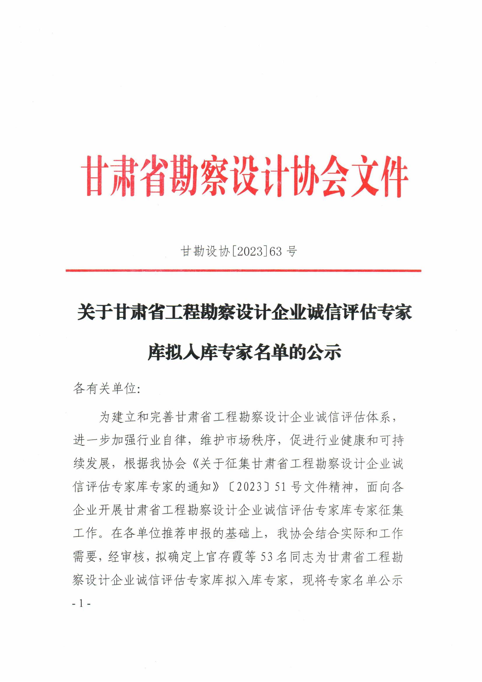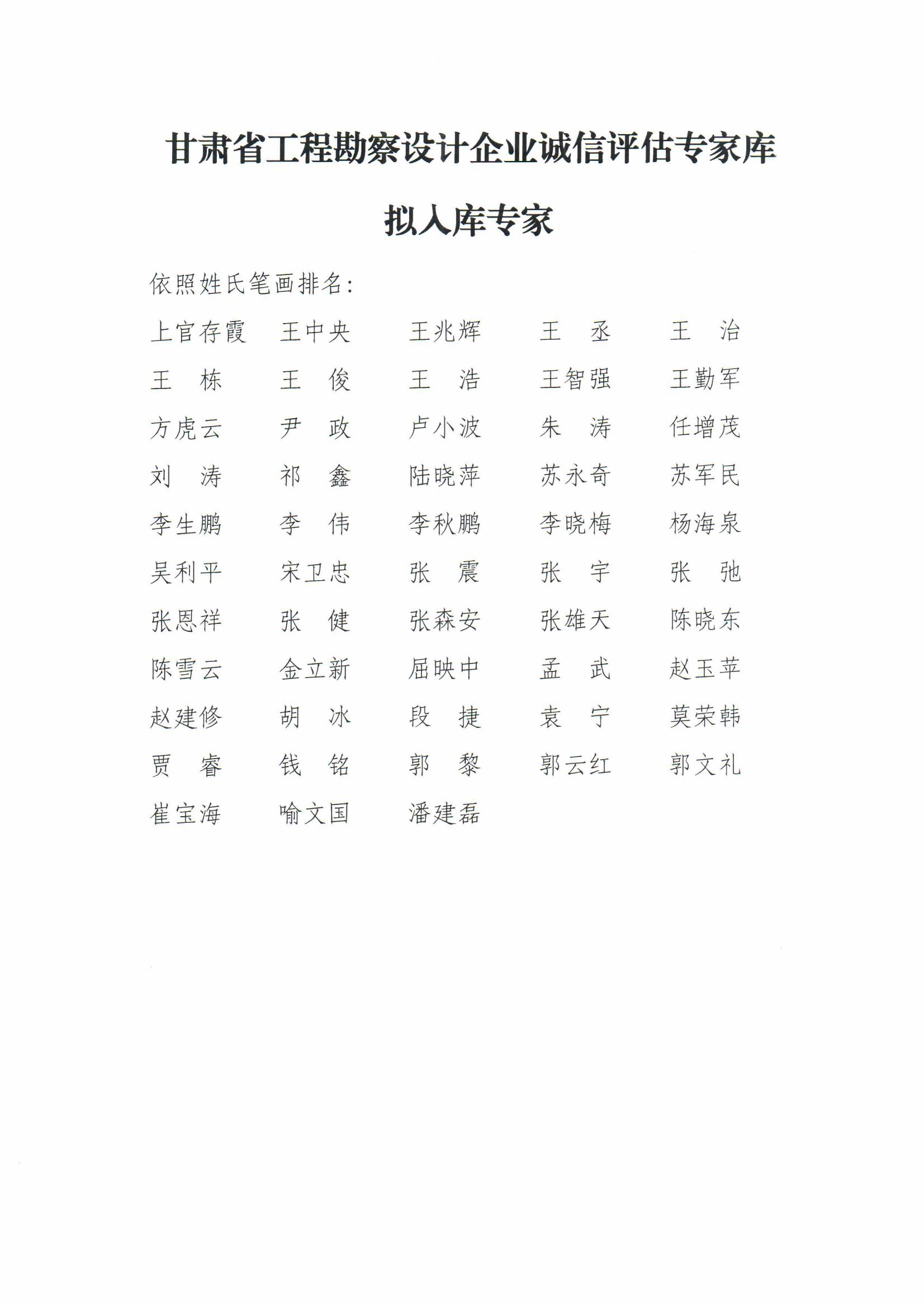 关于甘肃省工程勘察设计企业诚信评估专家库拟入库专家名单的公示
