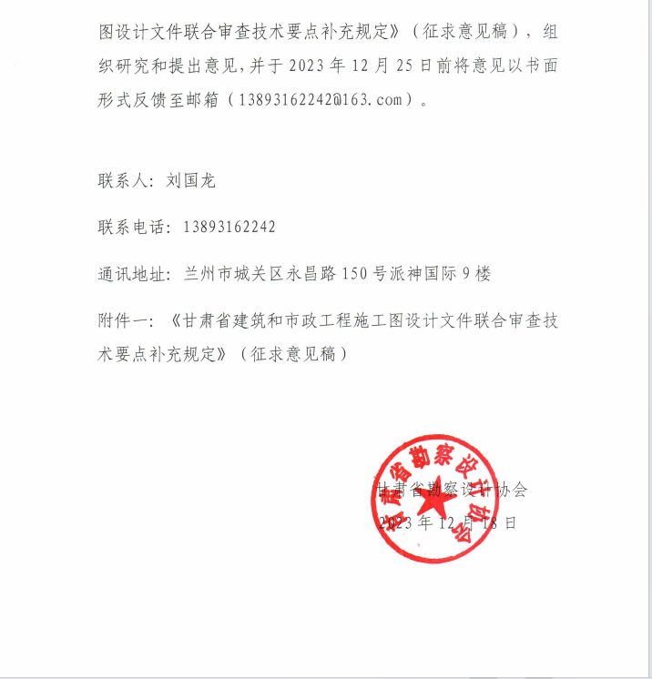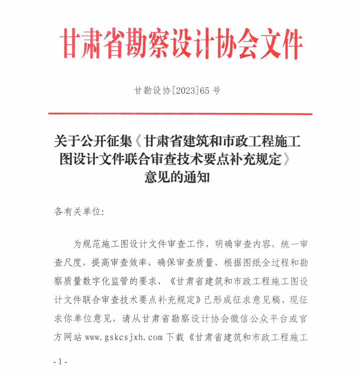 关于公开征集《甘肃省建筑和市政工程施工图设计文件联合审查技术要点补充规定》意见的通知
