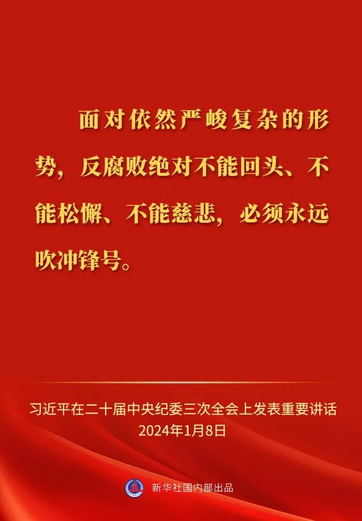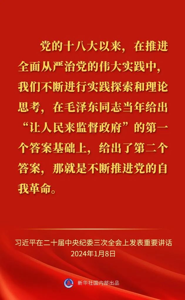 中共中央总书记、国家主席、中央军委主席习近平8日上午在中国共产党第二十届中央纪律检查委员会第三次全体会议上发表重要讲话,一起来看金句。
