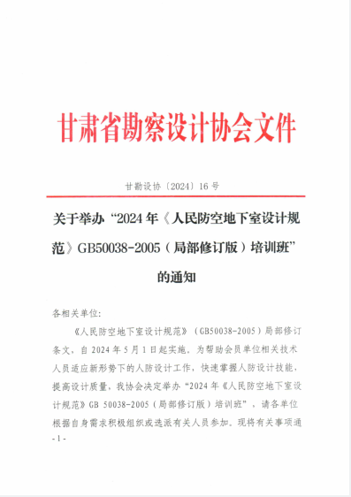 关于举办“2024年《人民防空地下室设计规范》GB50038-2005(局部修订版)培训班”的通知