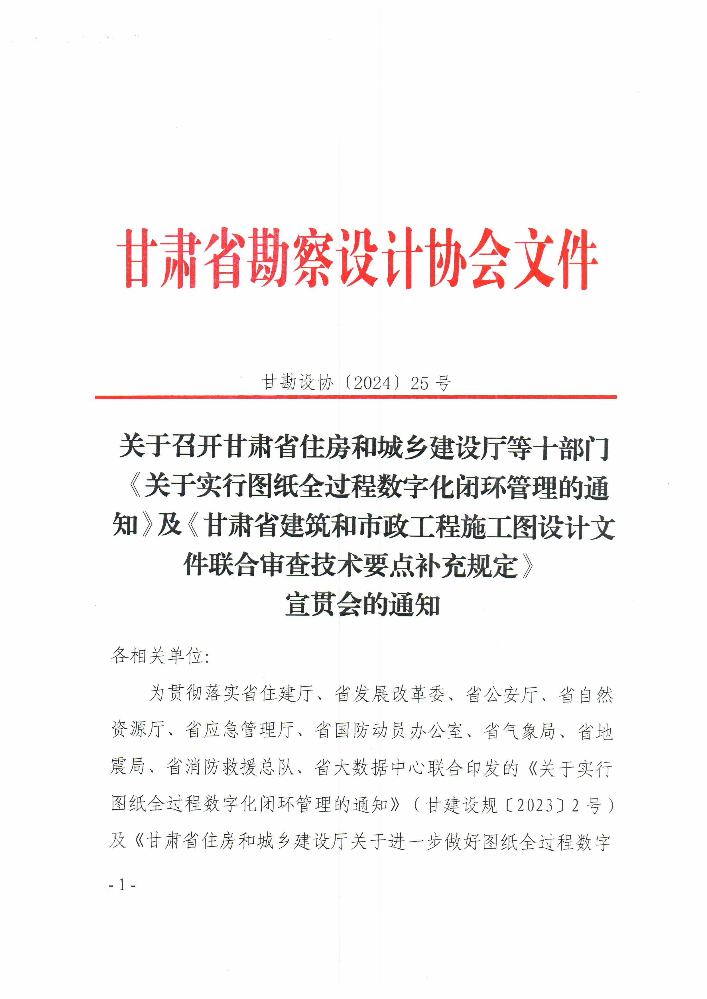 关于召开18新利首页等十部门《关于实行图纸全过程数字化闭环管理的通知》及《甘肃省建筑和市政工程施工图设计文件联合审查技术要点补充规定》宣贯会的通知