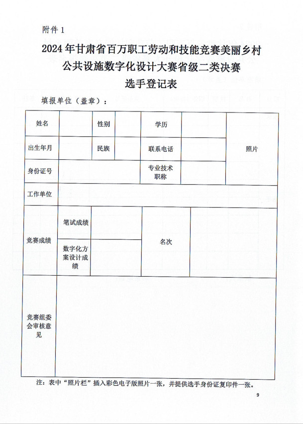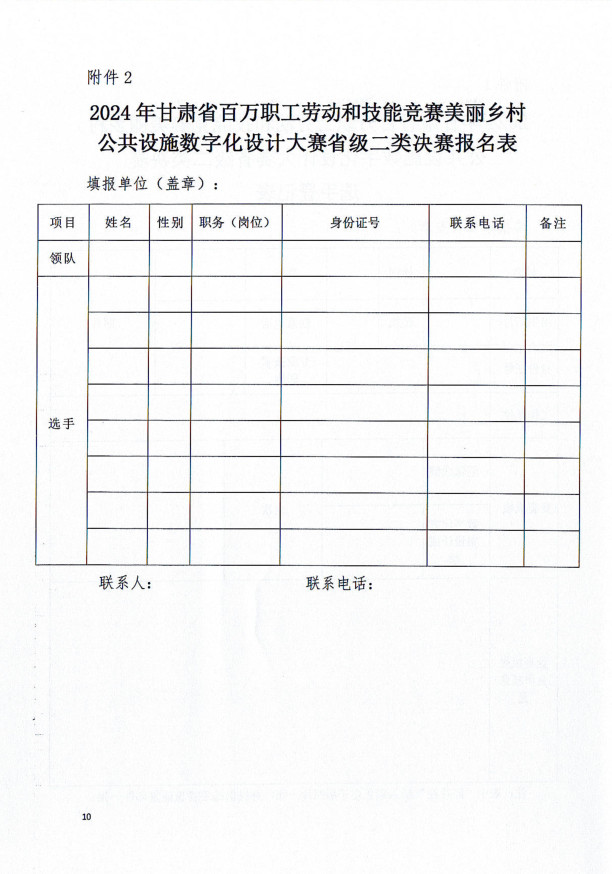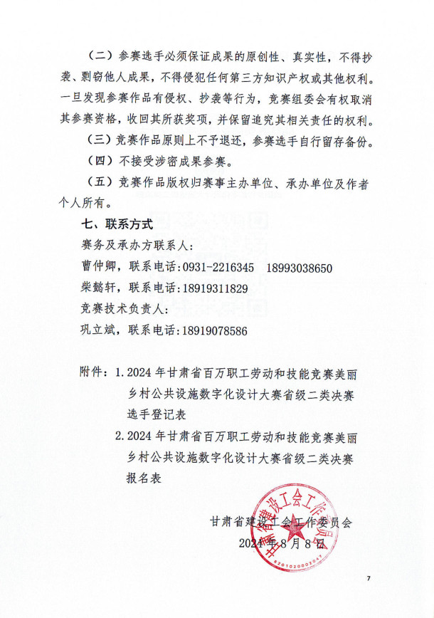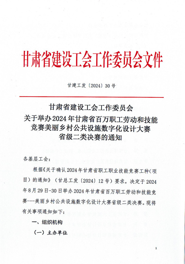 关于举办2024年甘肃省百万职工劳动和技能竞赛美丽乡村公共设施数字化设计大赛省级二类决赛的通知