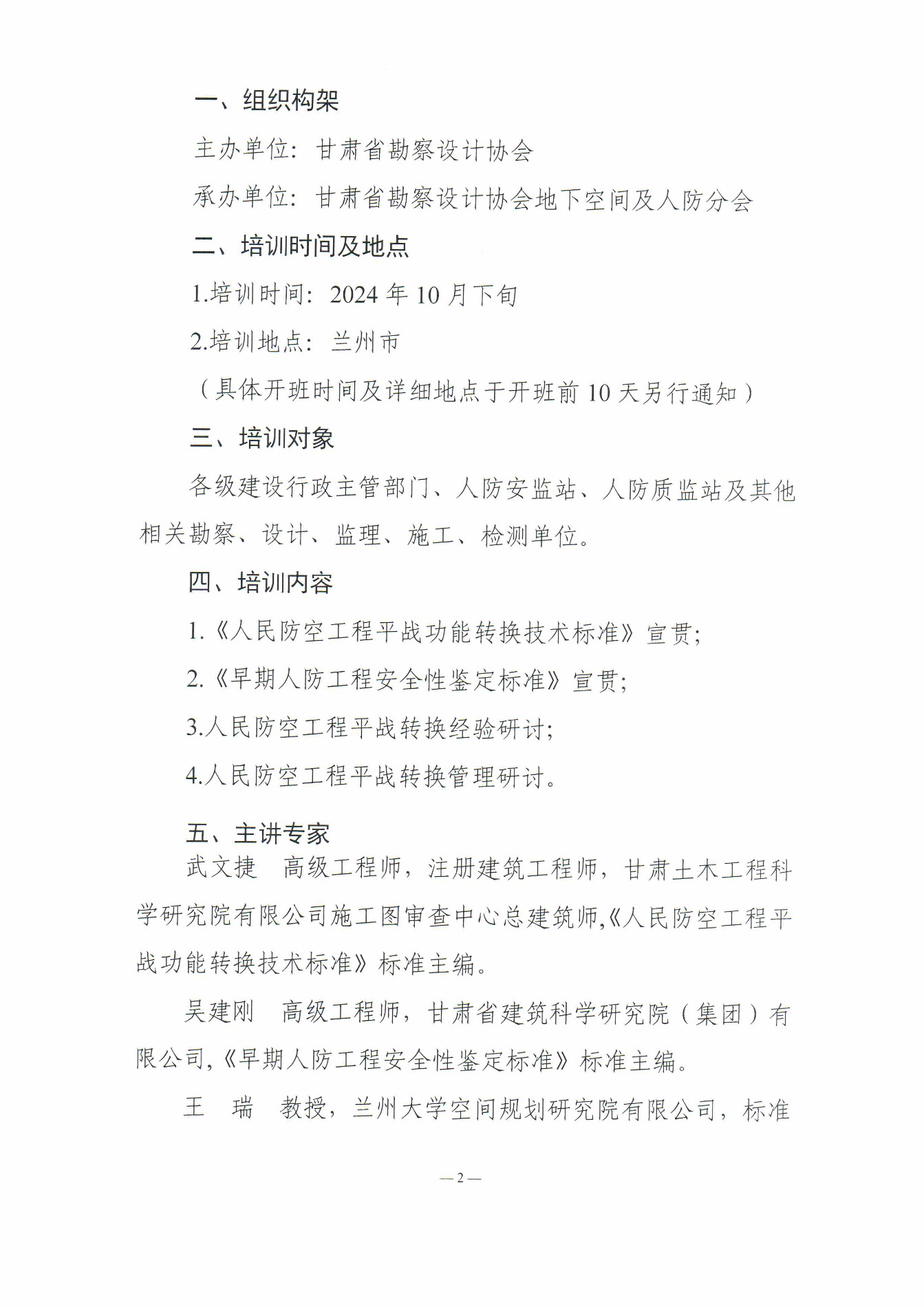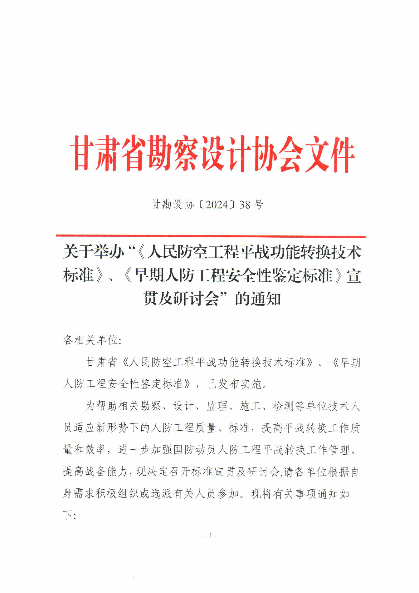 关于举办“《人民防空工程平战功能转换技术标准》、《早期人防工程安全性鉴定标准》宣贯及研讨会”的通知