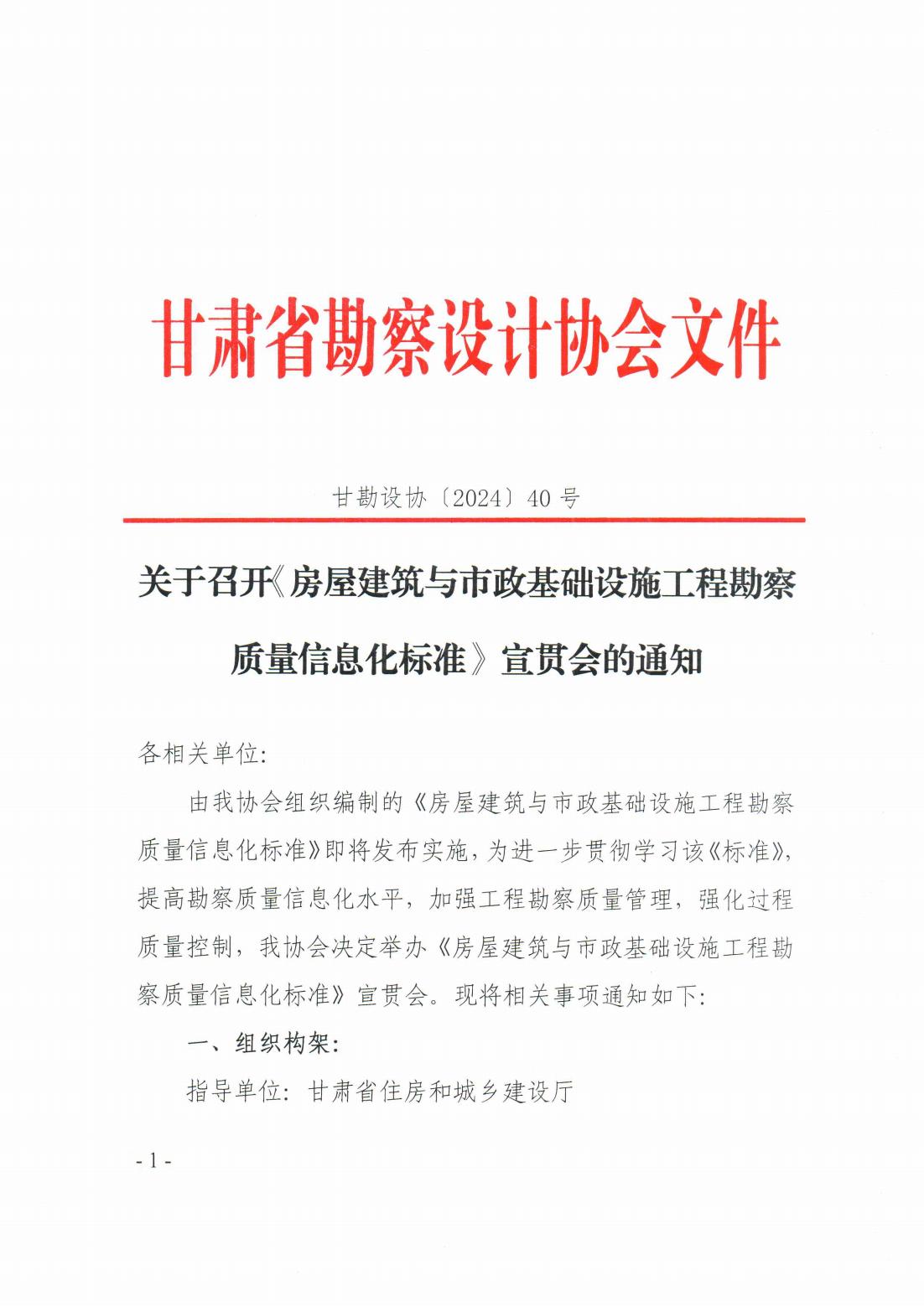 关于召开《房屋建筑与市政基础设施工程勘察 质量信息化标准》宣贯会的通知