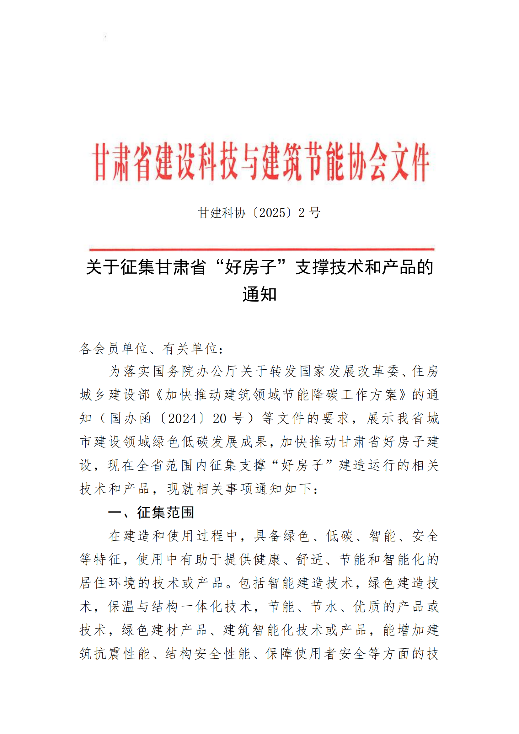 转发丨关于征集甘肃省好房子技术和产品的通知