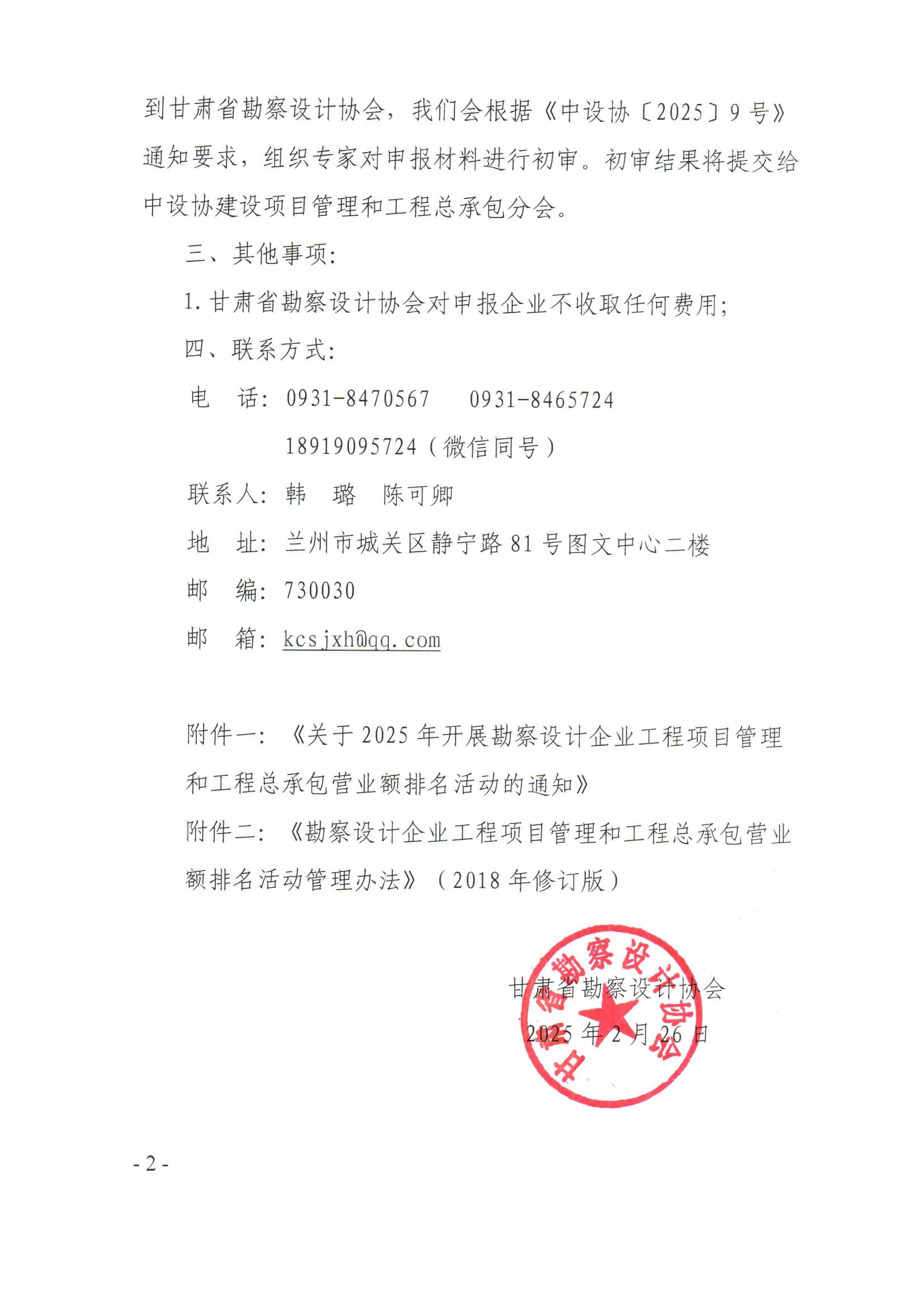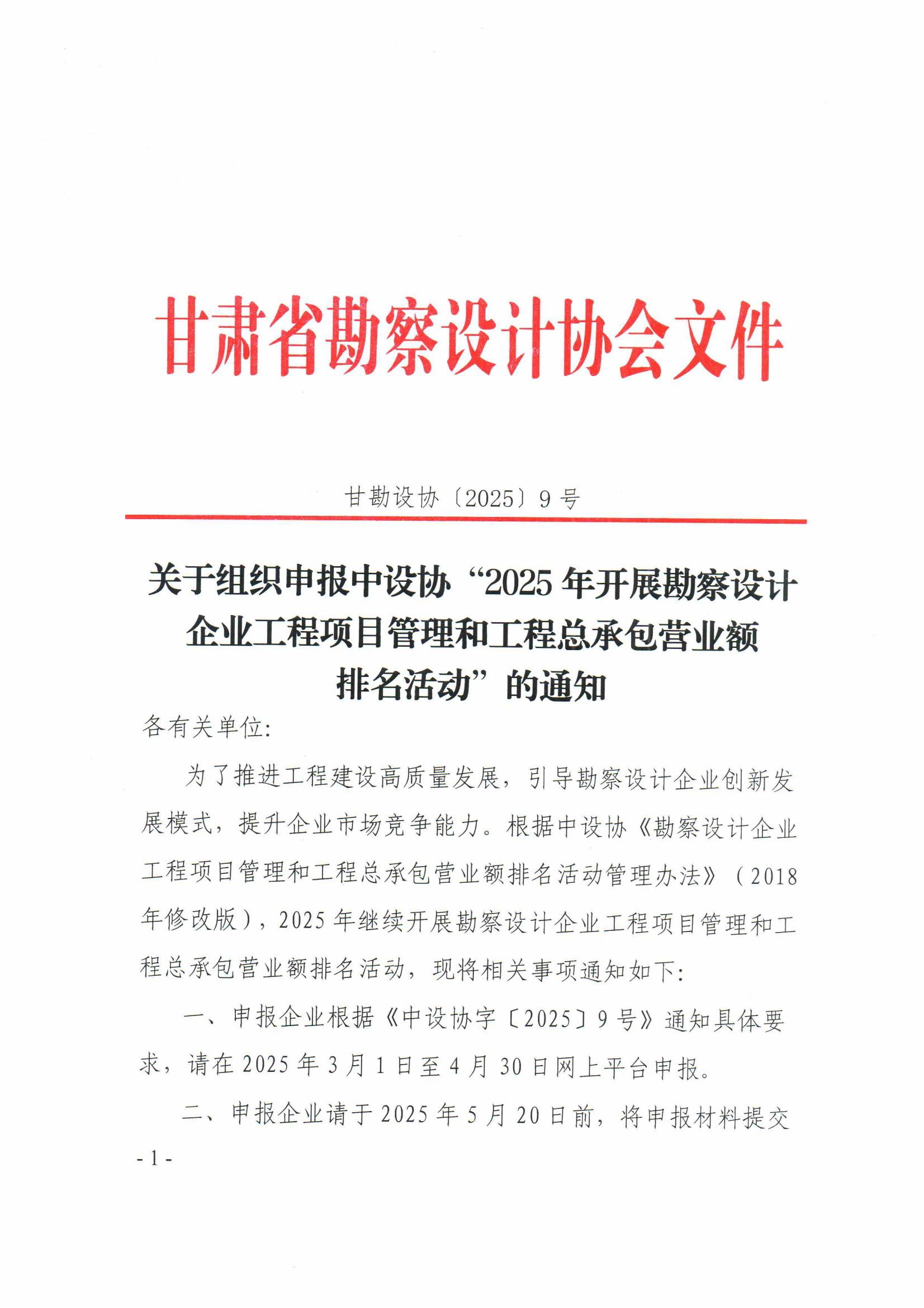 关于组织申报中设协“2025年开展勘察设计 企业工程项目管理和工程总承包营业额 排名活动”的通知