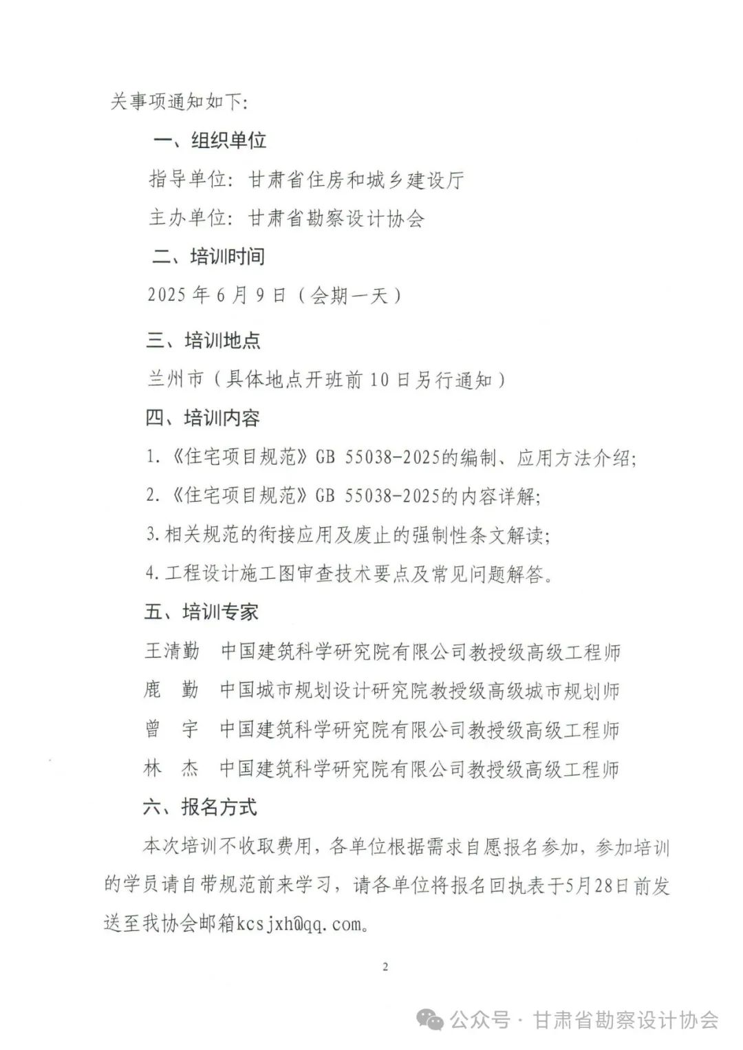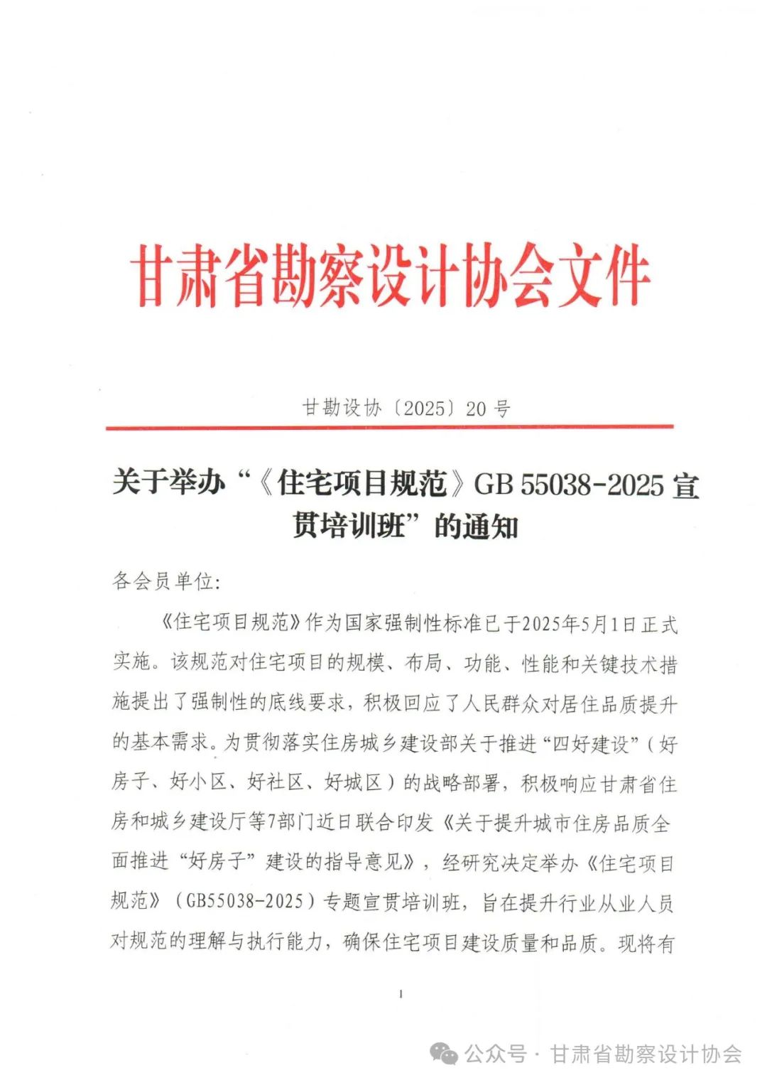 关于举办“《住宅项目规范》GB 55038-2025宣贯培训班”的通知