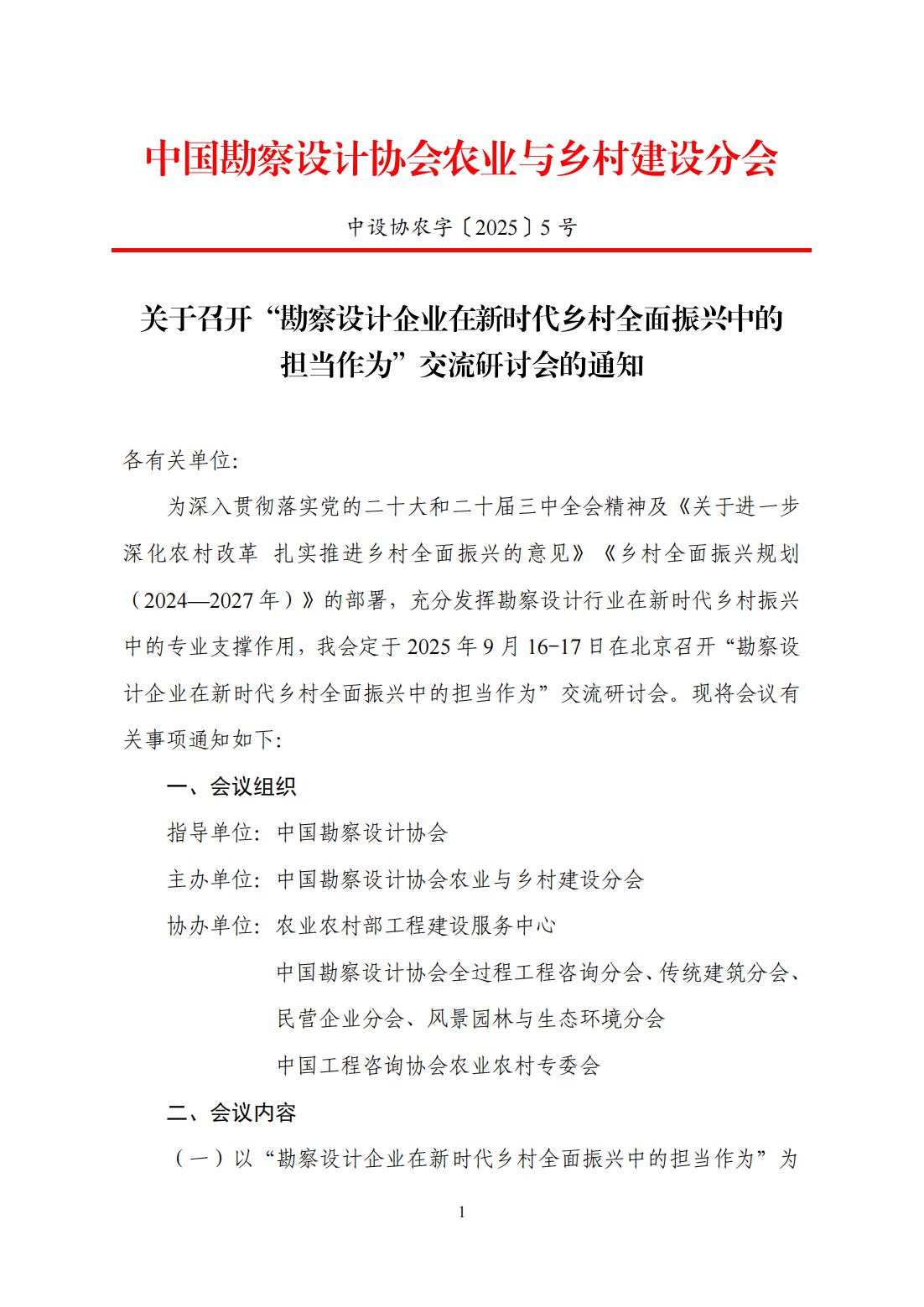 转发|关于召开“勘察设计企业在新时代乡村全面振兴中的担当作为”交流研讨会的通知