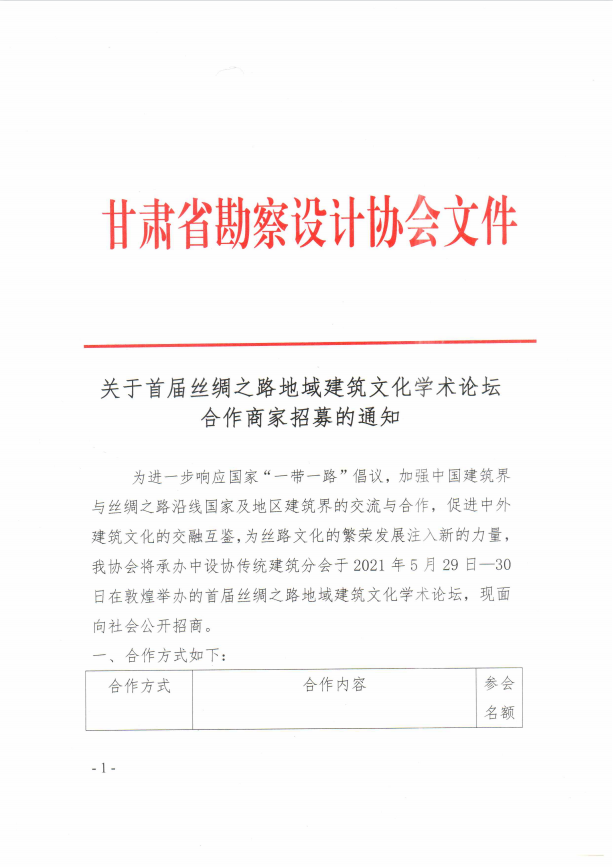 关于首届丝绸之路地域建筑文化学术论坛 合作商家招募的通知