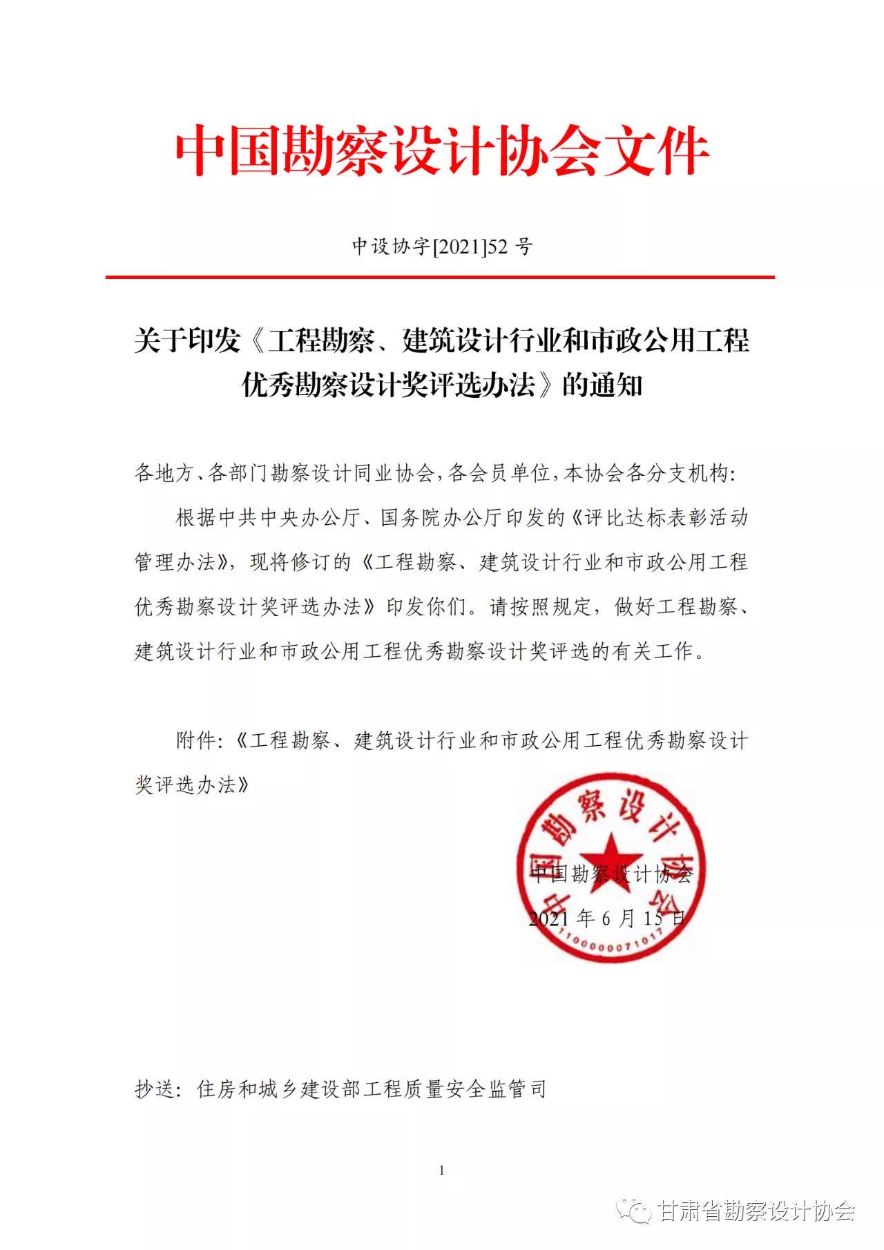 中国勘察设计协会关于印发《工程勘察、建筑设计行业和市政公用工程优秀勘察设计奖评选办法》的通知