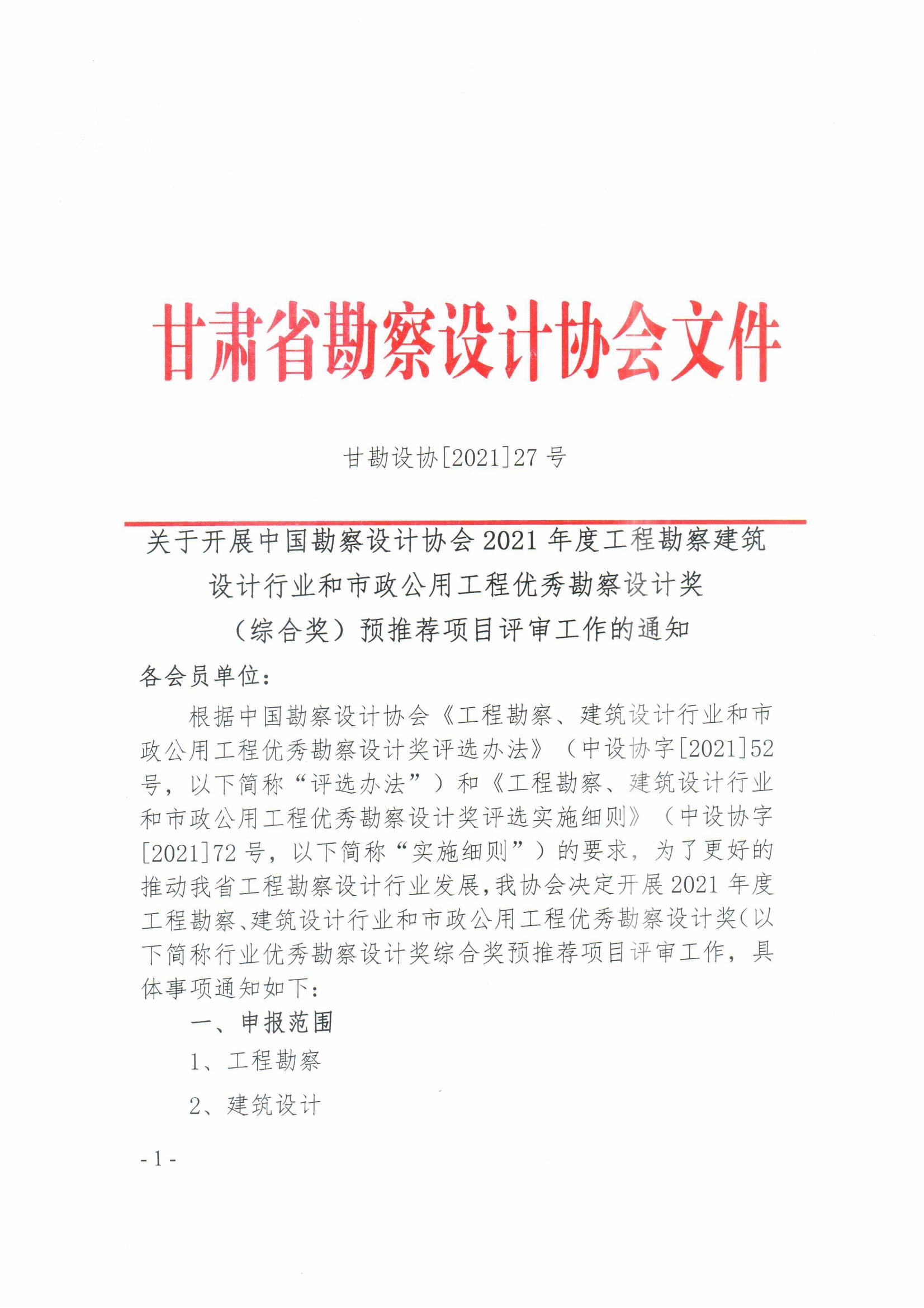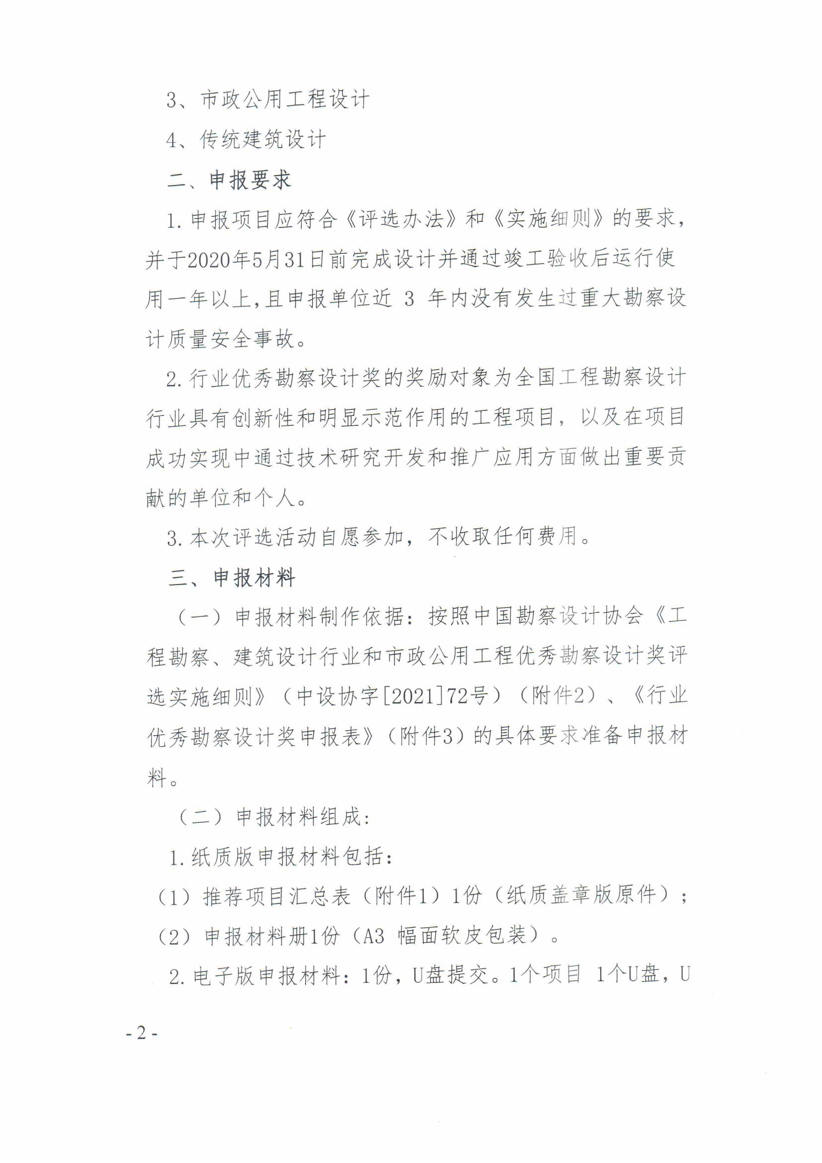 关于开展中国勘察设计协会2021年度工程勘察建筑设计行业和市政公用工程优秀勘察设计奖 (综合奖)预推荐项目评审工作的通知