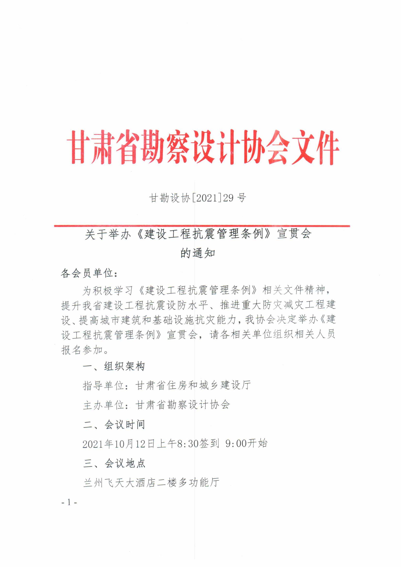 关于举办《建设工程抗震管理条例》宣贯会的通知