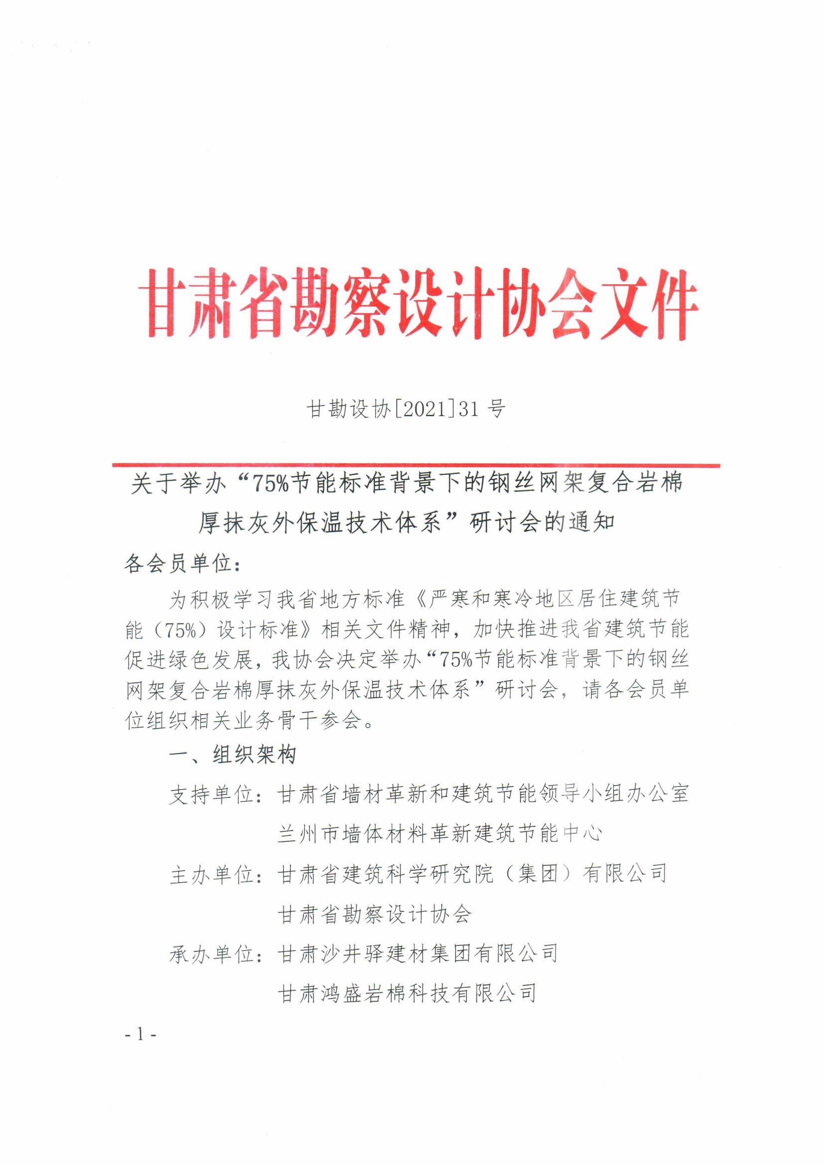 关于举办“75%节能标准背景下的钢丝网架复合岩棉厚抹灰外保温技术体系”研讨会的通知